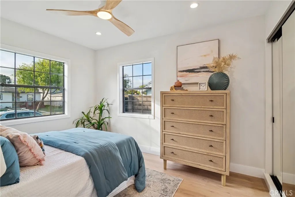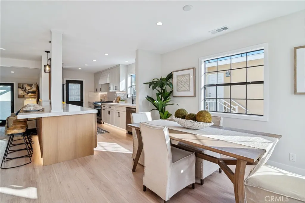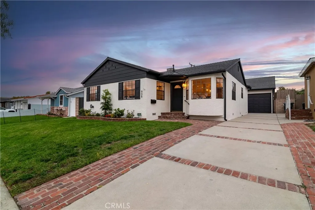 Step into a home that blends casual coastal elegance with everyday functionality. From the moment you walk in, youre welcomed by an open, airy layout filled with natural light and anchored by a statement-making shiplap accent wall in the living area. The space flows seamlessly into a beautifully styled kitchen featuring quartz countertops, stainless steel appliances, warm-toned cabinetry, and a large island perfect for morning coffee or hosting friends. The primary suite offers a quiet retreat with dual closets and a spa-like en-suite finished in striking marble tile from floor to ceiling. Two additional bedrooms provide flexibility for guests, home office, or family, while the second bathroom features double sinks and clean, modern finishes. Step outside to a backyard designed for Southern California living a pergola-covered patio, grassy area, and just the right amount of privacy for relaxing or entertaining. The oversized detached garage with tall ceilings offers plenty of room for storage, creative space, or future possibilities. With central air conditioning, ceiling fans in every bedroom, and curated design details throughout, this home offers comfort, character, and charm. Located in a well-established neighborhood close to top-rated schools, parks, dining, shopping, and just minutes to the beach it's a turnkey opportunity to live the South Bay lifestyle with style and ease.