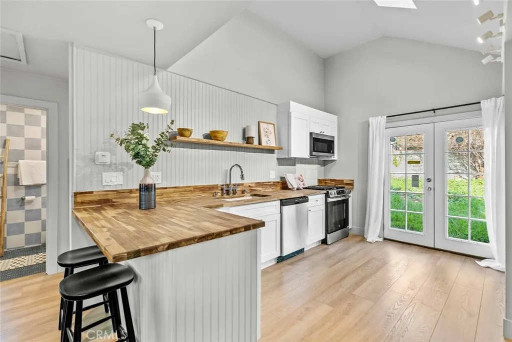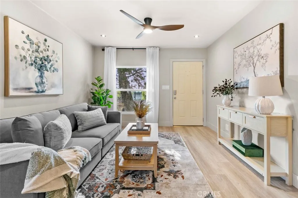 Discover this beautifully remodeled single family home where modern design and everyday comfort blend seamlessly. Featuring 2 bedrooms, 1 bathroom, and 825 sq ft of living space on a 4166 sq ft lot, this residence has been fully reimagined from top to bottom with quality finishes and thoughtful upgrades. As you enter, you are greeted by new wood style vinyl flooring, fresh interior and exterior paint, and recessed lighting that adds warmth and sophistication. The inviting living area is enhanced with ceiling fans for comfort and new retrofit windows that fill the home with natural light. The brand new kitchen is a true showstopper, featuring white shaker cabinetry, wood countertops, and stainless steel appliances including a range, dishwasher, and microwave hood. Every detail was considered, from the new sink, faucet, garbage disposal, and soap dispenser to the breakfast bar, perfect for casual dining or morning coffee. The fully renovated bathroom feels like a private retreat with new tile flooring and shower walls, a modern vanity and mirror, updated shower fixtures, an exhaust fan, and stylish accessories. Outside, the revitalized backyard offers new landscaping, vinyl fencing, a sprinkler system with automatic timer, and freshly planted grass, creating the perfect setting for outdoor entertaining, gardening, or quiet relaxation. The spacious lot also presents the potential for an ADU, adding future flexibility and value. This move in ready gem is ideal for downsizers or anyone seeking turnkey living in a peaceful Tujunga neighborhood close to parks, cafes, and nature tr
