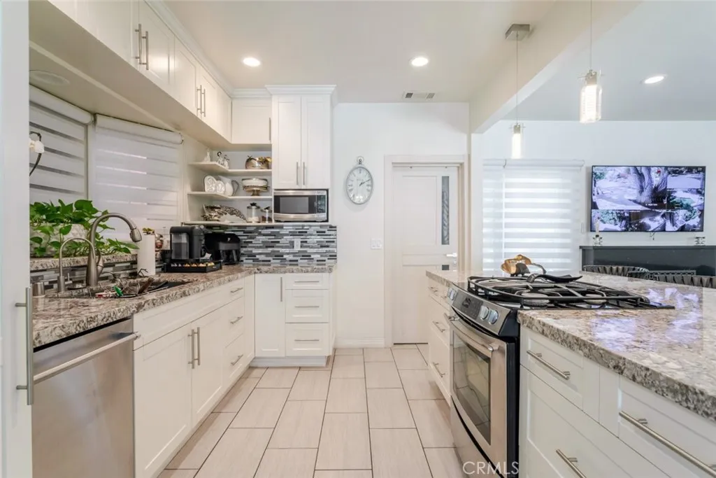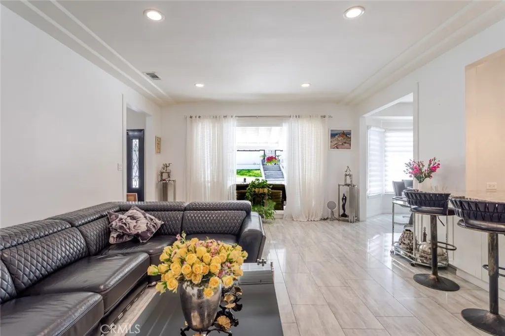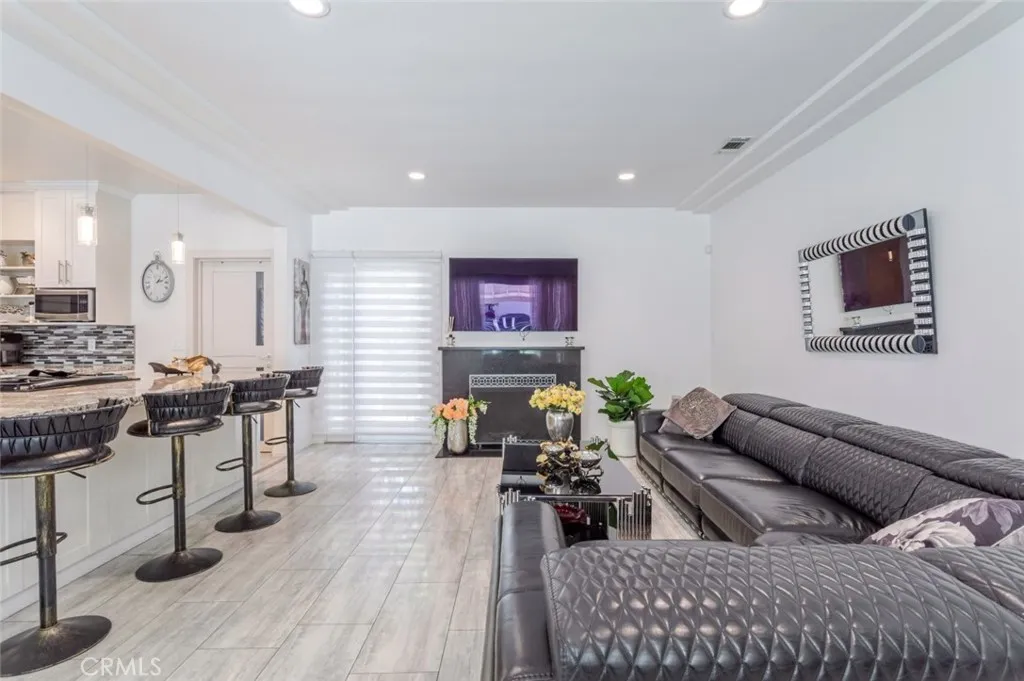 Welcome to 7284 Saint Estaban Street, a beautifully maintained single-story home nestled in a peaceful Tujunga setting. Offering 2 bedrooms, 2 bathrooms, and approximately 1,256 sq ft of thoughtfully designed living space, this residence blends comfort, style, and indoor-outdoor living. Light-filled and airy, the open floor plan showcases a spacious living room with coffered ceilings, recessed lighting, hardwood flooring, and a cozy wood-burning fireplace. Elegant French doors and a large picture window bring in abundant natural light, creating a seamless connection between the living, dining, and kitchen areas, ideal for both everyday living and entertaining. The updated kitchen features ample cabinetry, granite countertops, stainless steel appliances, and a generous breakfast bar that opens to the main living space. A charming dining area is perfectly positioned near oversized windows, offering a bright and inviting place to gather. Both bedrooms are well-proportioned, with the primary suite offering comfort and privacy. The home's layout is designed for ease and functionality, complemented by an attached one-car garage. Enjoy California living at its best in the expansive backyard, complete with a covered patio lounge area, mature trees, and a large paved space ideal for entertaining, recreation, or additional parking. The private setting provides a tranquil retreat while still being conveniently located near local amenities. A wonderful opportunity to own a move-in ready home with character, charm, and versatile outdoor space in a desirable Tujunga neighborhood.