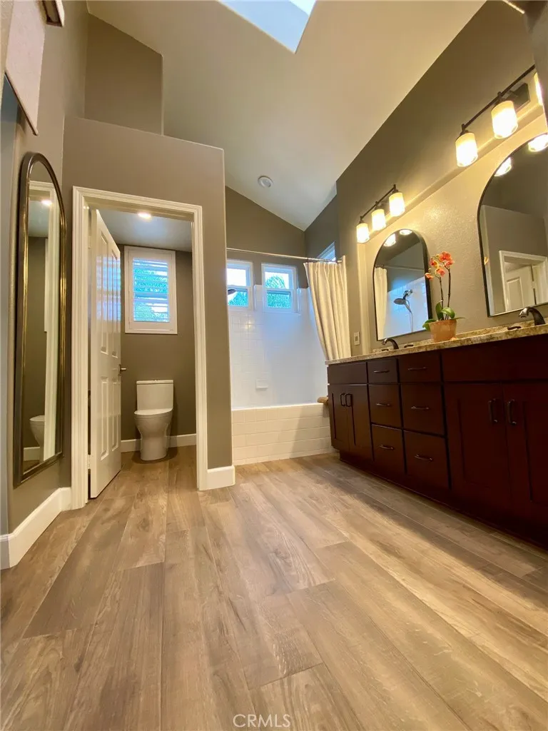 Huge Price Improvement! Rare opportunity to own a professionally updated masterpiece at the premier value in prestigious, gated community of Miramonte. Nestled on a corner lot within the desirable Tustin Ranch Golf Course neighborhood, this absolutely stunning 3-bedroom-plus-loft home lovingly cared for by its owners, blends charm, functionality, and showcases tons of luxury upgrades, including the addition of a spacious loft, recessed lighting, newer windows and doors, premium wood flooring on the upper level. Step into the elegant living/family room featuring soaring vaulted ceilings, expansive windows with custom coverings, luxury tile flooring, high-end built-in Thermador wine cooler, welcoming fireplace with granite facing, raised hearth and wood mantel. The remodeled kitchen is a true centerpiece, boasting granite countertops and backsplash, a picture window above the sink offering views of the backyard, moveable granite island, lighted cabinetry with glass doors, a Bosch dishwasher, a Samsung oven, a built-in KitchenAid refrigerator, a stainless steel range hood, a cozy dining area, and a sliding panoramic door leading to a serene, private backyardperfect for outdoor dining, entertaining, morning coffee or just simply relaxation in a fragrant tapestry of roses, azaleas, bougainvillea, and variety of fruit trees: orange, apricot, lemon, mandarin, and plum. Downstairs also features a tastefully updated powder room and direct garage access. Ascend the custom wood and wrought-iron staircase to discover a spacious primary suite with trees view, vaulted ceilings and upgrad
