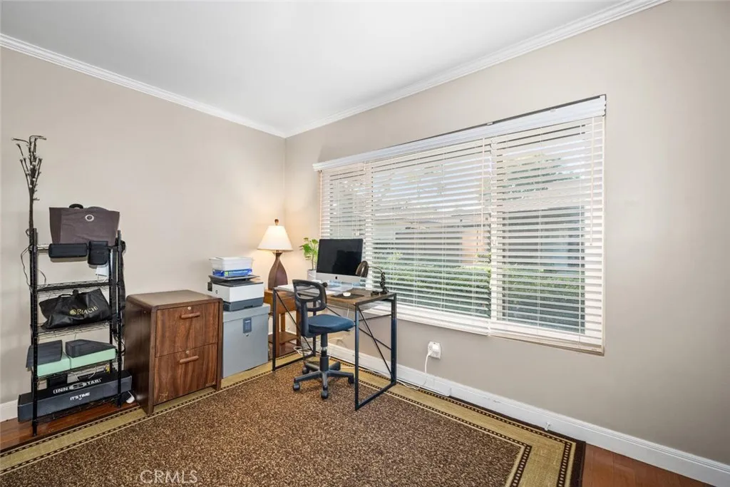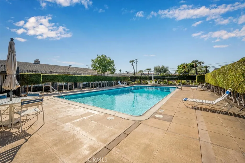 Welcome to the charming community of Tree Haven, where youll discover this delightful and truly move-in ready single-level home featuring 1 bedroom and 1 bathroom. Tucked away as a desirable corner unit amidst beautiful Jacaranda and Crepe Myrtle trees, this residence offers both comfort and charm. Step inside to find a spacious living room with hardwood floors and a versatile layout that includes a cozy area perfect for a home office overlooking the lush garden setting. A classic brick, wood-burning fireplace creates a warm focal point for the living space. The updated kitchen features matching white appliancesincluding a microwave and gas ovenpaired with crisp cabinetry and granite counters. Adjacent to the kitchen, the dining area offers generous wall space ideal for a sideboard or additional storage. A sliding glass door leads to your private backyard oasis, complete with a wood-style metal patio cover adorned with a chandelier and surrounded by low-maintenance vinyl fencingperfect for outdoor entertaining. Down the hall, youll find a spacious bedroom with dual mirrored closets, providing excellent storage. The bathroom has been tastefully remodeled with a tiled walk-in shower and a refreshed vanity. Additional highlights include 1 garaged parking space with storage cabinets, central HVAC, in-unit washer and dryer, smooth ceilings, and dual-pane windows throughout. Tree Haven offers beautifully maintained grounds with two pools and two clubhouses for residents to enjoy. Conveniently located in a wonderful part of Tustin, youll find restaurants, shopping, and everyday am