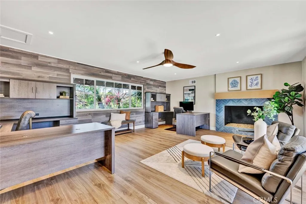Welcome to 17522 Orange Tree Lane, a Beautifully Remodeled Home Nestled on an Interior Lot in the Heart of Tustin. Thoughtfully Upgraded Throughout, this Home Showcases an Open Floor Plan with Four Bedrooms, Three and a Half Bathrooms, Owned Solar, and an Abundance of Natural Light. Custom Upgrades Include New Interior Paint, New Wide-Plank Luxury Vinyl Flooring, New Custom Closets with Built-Ins, New Fencing, Updated Landscape Lighting, and More. The Spacious Living Room (Currently Used as an Office) Features a Cozy Fireplace and Backyard Access. The Family Room is Open to the Dining Area and Kitchen, with Accordion Glass Doors to the Backyard, Ideal for Everyday Living and Entertaining. The Kitchen is the Heart of the Home, Featuring a 13-Foot Island with Waterfall Edge, Quartzite Counters, Tile Backsplash, Farmhouse Sink, Wine Fridge, Open Shelving, and High-End Appliances. The Primary Suite Includes Dual Mirrored Closets and an En-Suite Bathroom with Dual Vanities and Walk-In Shower. The Private Backyard is Thoughtfully Designed, Featuring a Gated PebbleTec Pool and Spa with Baja Shelf, Oversized Pergola, Large Paver Patio, Turf, Outdoor Kitchen with Built-In BBQ, Mini Fridge, and Bar Seating, along with Speakers, Garden, Fruit Trees (Lemon and Kumquat), and Updated Lighting. Direct Access Three-Car Garage with EV Charger, Epoxy Floors, Built-In Cabinets, and Large Attic Space. Indoor Laundry Room, Built-Ins, and Access to the Pool Bath. Located in the Award-Winning Tustin Unified School District, with Easy Access to the 5/55/22 Freeways, as well as Old Town Tustins Sho