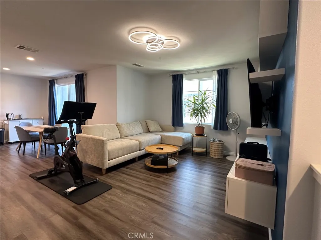 Welcome to this beautiful 3-bedroom, 3-bathroom townhome in the Orchards Community in Upland! This multi-level property features modern amenities, comfortable living spaces, and thoughtful upgrades throughout. The spacious kitchen features pendant lights above the island with granite countertops and stainless steel appliances. A generous walk-in pantry provides ample storage for all your kitchen essentials. The open-concept living area is bright and inviting, highlighted by a 5-ring LED ceiling light with remote control. Each bedroom features a retractable ceiling fan with built-in lighting, all remote-operated. The primary bedroom and a second-floor bedroom both offer walk-in closets. All three bathrooms feature tubs with waterproof, machine-washable shower liners. Central heating and air conditioning ensure year-round comfort. A private balcony offers the perfect spot for relaxation. The two-car garage is a standout feature, complete with built-in cabinetry for organized storage, a whole-home water conditioning system, and a Level 2 EV charger ideal for electric vehicle owners. Conveniently located near Upland's vibrant downtown with restaurants, shops, freeway access, and the Metrolink station. Community amenities include pools, outdoor BBQ, clubhouse, kids' playground, and ample guest parking. An exceptional opportunity to own in one of Upland's most sought-after communities.