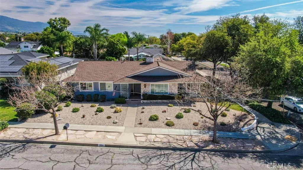 Charming single story 1960s home offering 3 bedrooms and 3 bathrooms with approximately 2,268 square feet of living space on a 10,000+ square foot lot. This well-maintained property features a remodeled kitchen completed about 10 years ago, complemented by both a formal dining room and a separate casual dining area conveniently located off the kitchen. The home offers multiple living spaces including a family room highlighted by a cozy fireplace, providing flexible areas for entertaining and every day living. An enclosed patio room with mountain and pool view for relaxation. The primary bedroom features a makeup vanity, a large walk-in bathroom, and a sliding glass door providing direct access to the backyard. Exterior features private garage entry in back of home. An extensive decorative rock landscaping covering approximately 70% of home, for low maintenance ground. Roof replaced approximately 10 years ago and an air conditioning system about 5 years ago. Solar panels for pool heating. This home is located south off the 210 freeway