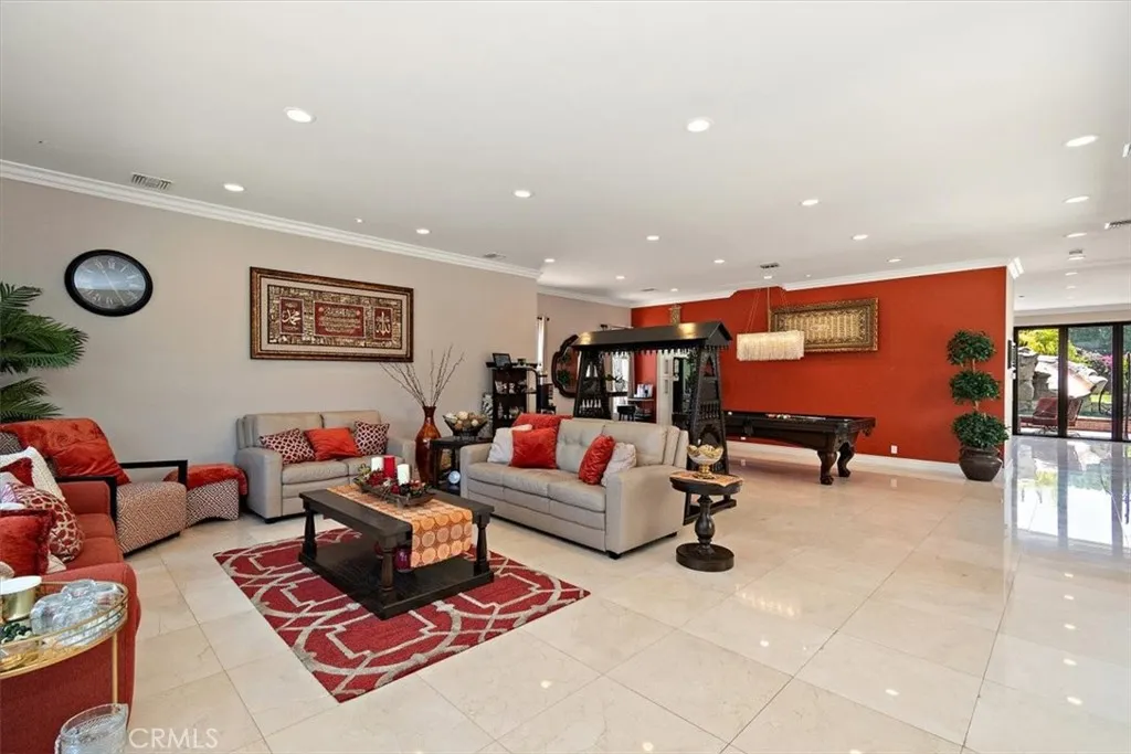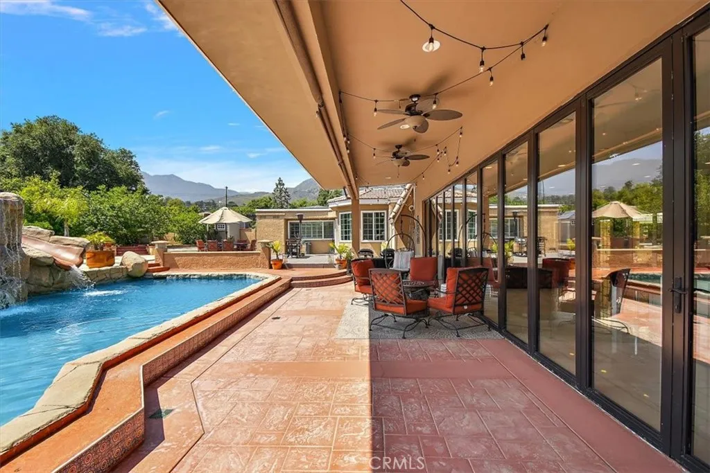 Breaking News! Welcome to 2335 San Antonio Ave, Upland, CA, an exceptional San Antonio Heights Custom Designed Home for those who live boldly and entertain lavishly. This 5,120 sq ft residence offers 5 bedrooms, 3 full baths and 2 half bathrooms, 17,500 sq ft lot. As you enter the home through towering wrought iron doors your greeted with a relaxing view of the atrium. Upon entering, the soothing sound of a gentle cascade immediately calms the spirit. At the heart of the home lies a chef's gourmet kitchen you want to write home about featuring sleek quartz countertop with oversized island and full sitting area. Ample counter space for your prep work, premier stainless-steel appliance, wine frig, newer modern cabinetry and pantry. But there is more, the open concept layout flows effortlessly into the family room from your chef's kitchen featuring high ceilings, almost full length Accordian Doors that seamlessly connect to the private oasis backyard pool and spa for year-round entertainment. Off the family room, French doors that extend to creates a sense of spaciousness, relaxation, and a focal point in the atrium. Truly an entertaining home with a living room thar features plenty of space for a formal sitting area, game room area, and coffee station. Your backyard Oasis features pool with grotto, and a spa is a luxurious and unique water feature combining relaxation with a natural cave-like element. Grand patio cover and plenty of space for barbeque enjoyment. The primary bedroom features a relaxing view of back yard, & a large walk-in closet. Primary bathroom offers amazin