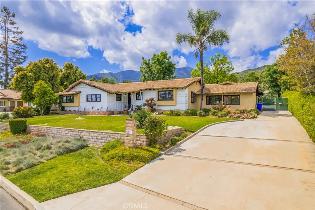 NEWLY REMODELED!!! This Magnificent SOUTH FACING one-story home located in the prestigious San Antonio Heights area in Upland. The owner has thoughtfully renovated with top of the line materials. It features 5 bedroom, 3 baths plus a HUGE BONUS ROOM. Large open concept living room with fireplace. Recesses lighting, new mohawk rev-wood tiles and laminate wood flooring throughout. Completely brand new bathrooms. Gourmet kitchen with horizontal grain custom cabinetry and quartz counter top with Waterfall edge on the island. Large backyard with Views of mountains, fruit trees, enclosed patio, and room for ADU. private gated side-yard with RV parking. Award-winning Upland school district. Close to wilderness walking trails, and parks. This could be your sprawling dream estate in this beautiful San Antonio Heights neighborhood! There is a one quarter share of water stock included with the purchase.