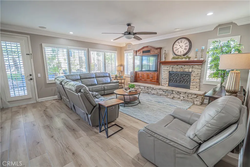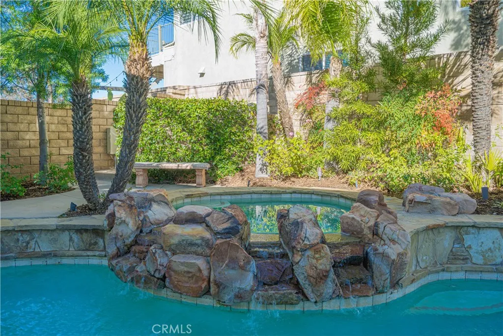 Discover a truly special residence nestled at the end of a quiet cul-de-sac in the heart of Valenciaa home where understated luxury, timeless style, and thoughtful design blend seamlessly. Offering 5 generous bedrooms, 4 beautifully updated bathrooms, and nearly 3,600 sq. ft. of refined living space, this property is perfect for anyone who values quality craftsmanship and effortless comfort. From the moment you arrive, the attention to detail is undeniable. Inside, youre greeted by soaring ceilings, newer flooring, designer paint, crown molding, upgraded lighting, and an elegant staircase setting a warm yet sophisticated tone throughout. The kitchen is of the home, showcases updated appliances, sleek cabinetry, and premium finishesideal for everyday cooking or hosting gatherings. Adjacent living spaces feature an entertainment center, statement lighting, and a cohesive flow. The primary suite is a retreat of its own, complete with a spacious bedroom and an adjoining private office currently outfitted with custom built-insperfect for remote work. The remodeled primary bath includes stylish tile work, modern fixtures, and a generous walk-in closet. The backyard is a dream for entertainers and relaxation alikefeaturing a sparkling pool and spa. Situated at the end of the cul-de-sac, a beautifully maintained community with access to multiple pools, a clubhouse, scenic paseos, and parksthis home offers the best of modern California living, just minutes from shopping, dining, and award-winning schools.