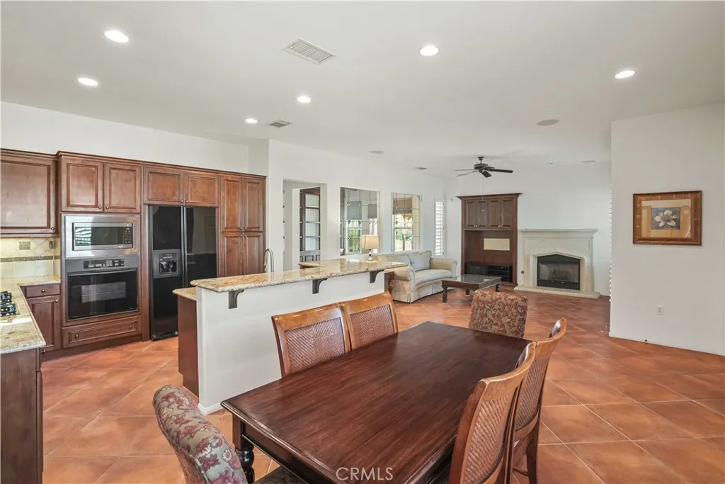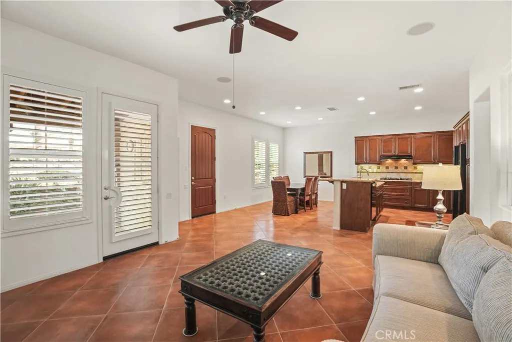 Location, Location, Location! Formerly the model home, this highly sought-after detached single-story residence is one of the most desirable floor plans in Belcaro, Valencias premier 55+ guard-gated community known for its lush landscaping, resort-style amenities, and vibrant lifestyle. Perfectly positioned on a premium view lot with no rear neighbors and just steps from the clubhouse, this beautifully maintained home offers both serenity and convenience. Step inside to find a move-in ready 2-bedroom, 2-bath home plus a spacious office or den ideal for a home office, hobby, or crafting space. The den features custom built-ins and elegant leaded glass details, adding both function and charm. The open-concept living area features 24x24 tile flooring, custom wood shutters, and a cozy gas fireplace, flowing into the upgraded kitchen complete with a gas cooktop, built-in refrigerator, center island with breakfast bar, and abundant cabinetry for storage. The primary suite is a peaceful retreat with a generous walk-in closet and a spa-like ensuite bath that includes a jetted soaking tub, separate walk-in shower, dual-sink vanity, and a stunning custom leaded glass window. The secondary bedroom is equally spacious and perfect for visiting guests. Enjoy true indoor-outdoor living with two private patio areas ideal for alfresco dining, morning coffee, or relaxing while overlooking the picturesque greenbelt and rolling hills. Additional highlights include a well-appointed indoor laundry room (washer and dryer included) and a direct-access two-car garage with epoxy flooring and extra s