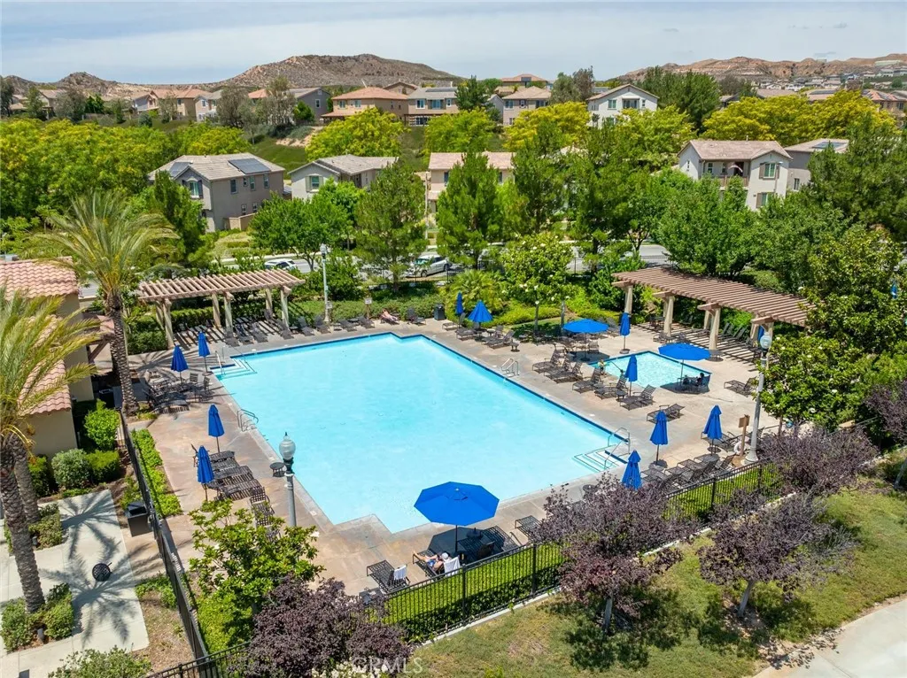 Exquisite Upgraded Valencia Home located on a Large Lot in the Gated West Hills Community! This Model like Designer Style home Boasts 5 Large Bedrooms (One Downstairs), Meticulous Master Suite, 3 Bathrooms (One Downstairs), approx. 3,400 sq. ft. on approx. 7,400 Sq. Ft. Lot. As you enter this Magnificent home you are drawn to the Stunning Upgraded Flooring & Cathedral Ceilings. Large Living Room (Could be Office), Fabulous Family Room with Romantic Fireplace & Ceiling Fan overlooking the Private Backyard, Formal Dining Area with Gorgeous Chandelier & Sliding Door to the Serene Backyard, Gourmet Chef's Kitchen with Stainless Steel Appliances including New Double Ovens, Refrigerator, Upgraded Cabinets, Granite Counters, Huge Granite Island with Built-In Storage underneath, Sitting Area & Pendant Lights, Large Walk-In Pantry. Perfect for any Celebrity Chef! As you Meander up the Spectacular Staircase with the Wood & Wrought Iron Banister you are drawn to the Huge Loft (Could be 6th Bedroom), Luxurious Master Suite with step-up separate sitting area & Stunning Mountain Views! Lavish Master Bathroom with Granite Counters, Oval Tub, Large Walk-In Shower, Dual Sinks, Vanity and Two Large Walk-In Closets. Feels like you are at a Bellagio Spa! Large Secondary Bedrooms (One with Walk-In Closet). Features include: Spectacular New Flooring, New Double Oven & Refrigerator, Recessed Lighting, Upstairs Laundry Room with Upgraded Cabinets, Sink, Large Walk-In Linen Closet, Ceiling Fans & Professionally Painted. Entertainers Backyard with Covered Patio, Custom BBQ, Enchanting Fireplace & Ma