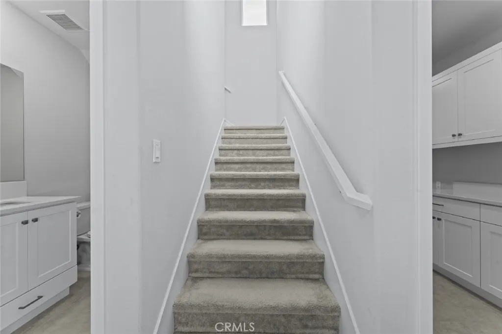 Welcome to 26912 West Winding Trail Court in the heart of the highly desirable FivePoint Valencia community, where modern living meets luxury and convenience. Built in 2022 by Lennar, this contemporary residence offers the perfect blend of sophistication, functionality, and comfort. Featuring three spacious bedrooms and three and a half beautifully appointed bathroomsincluding a highly sought-after main-floor bedroom and full baththis 1,920-square-foot home has been thoughtfully designed with todays lifestyle in mind. The open and airy layout showcases an abundance of natural light, high ceilings, and sleek finishes throughout, creating an inviting atmosphere ideal for both everyday living and entertaining. The stunning kitchen serves as the centerpiece of the home with a large quartz-topped island, stainless steel appliances, custom cabinetry, and generous counter space for preparing and sharing meals. Adjacent to the kitchen is a bright dining area that seamlessly connects to the living room, offering the perfect flow for gatherings with friends and family. Upstairs, the primary suite provides a serene retreat with a spa-inspired bathroom featuring dual sinks, a quartz vanity, a soaking tub, and a spacious walk-in closet. The secondary bedrooms are equally impressive and designed with comfort and versatility in mind. Additional highlights include recessed lighting, crown molding, energy-efficient solar panels leased at approximately $86 per month, central heating and air conditioning, and a finished two-car garage equipped with an electric vehicle charger. Residents of Fi