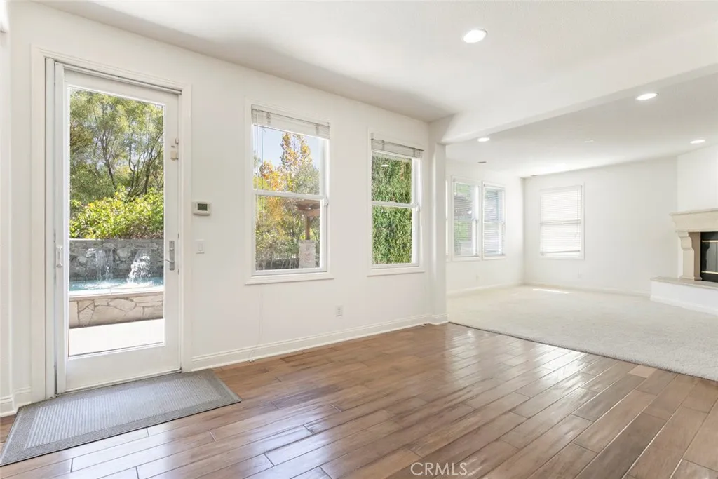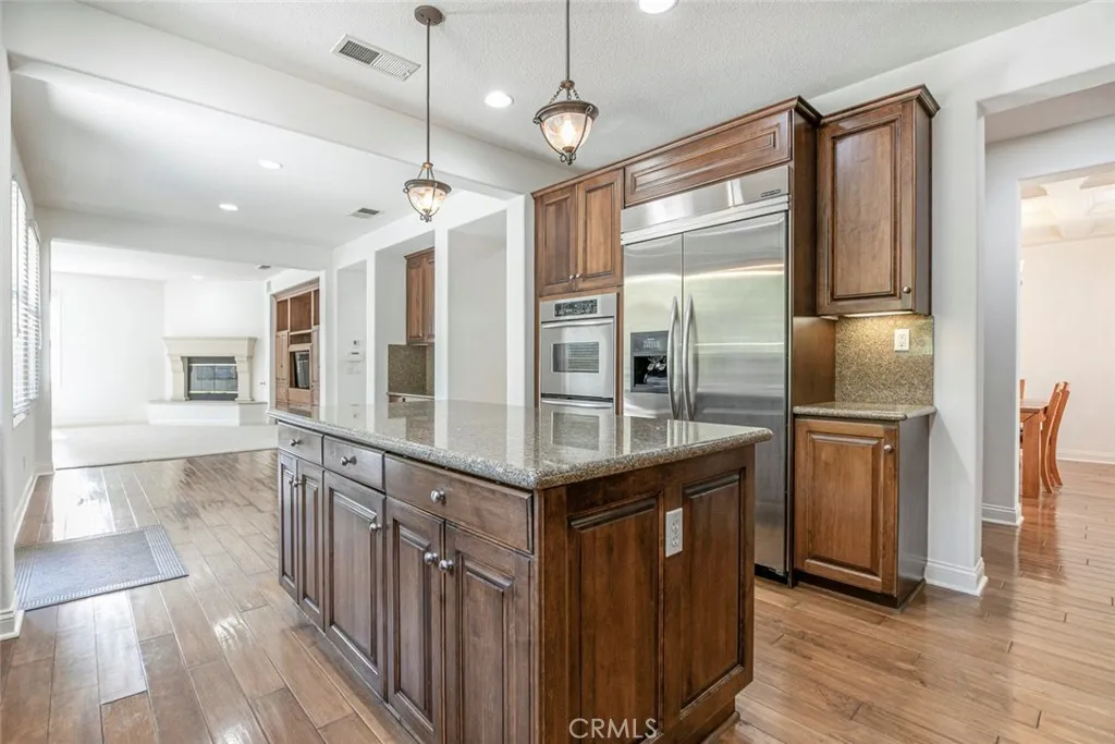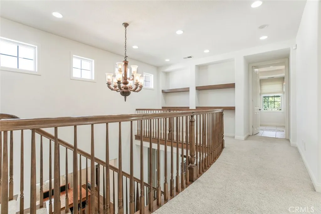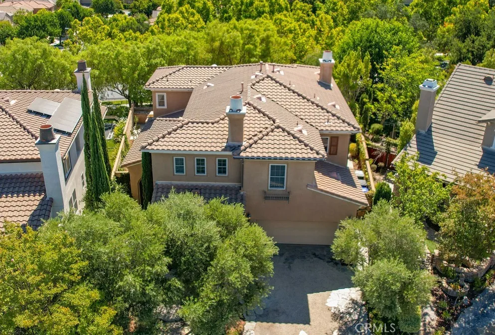 New interior paint throughout and refreshed! Welcome to the prestigious gated community of Westridge Valencia, where elegance, comfort, and lifestyle come together. Now back on the market with a fresh new look, this beautifully appointed home has just been refreshed with new interior paint throughout and some updates that make it feel crisp, clean, and move-in ready. Tucked away in a private cul-de-sac, the home opens with hardwood floors, crown molding, and a wood-finished foyer ceiling that creates a warm, refined first impression. A custom wine storage nook tucked behind a discreet door adds a touch of charm and sophistication. The spacious floor plan features formal living and dining rooms with coffered ceilings, a large family room with fireplace and built-ins, and a chefs kitchen with granite counters, center island, and built-in stainless steel appliancesideal for entertaining or everyday living. A downstairs en suite bedroom and a dedicated office provide flexible options for guests or work-from-home needs. A dramatic staircase with a high ceiling adds architectural volume and natural light as you transition to the upper level. Upstairs, a generous loft serves as a central retreat connecting four bedrooms, including one with its own en suite bath. A convenient laundry room enhances functionality. The private primary suite is a true sanctuary with two walk-in closets and a spa-inspired bath offering dual vanities, a soaking tub, and a separate shower. Step outside to a backyard retreat designed for California living, featuring a spacious patio with a pergola-shaded s