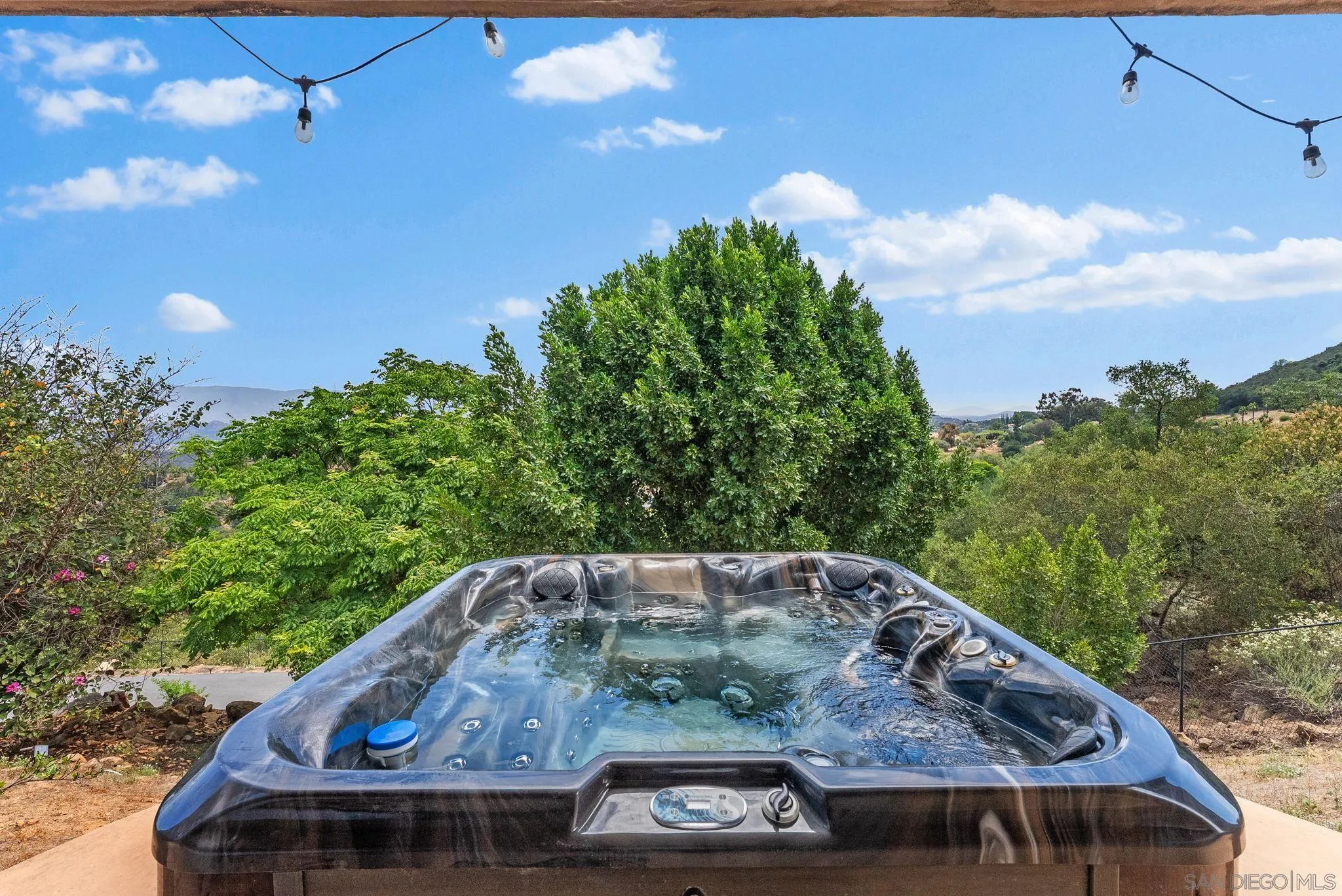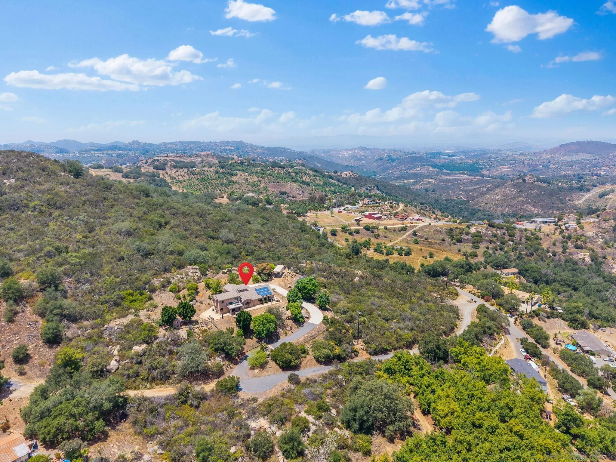 Welcome to your ultra-PRIVATE oasis on a spacious 4.32-acre lot in the heart of Valley Center. Refined country living with this exceptional estate, where timeless craftsmanship meets modern convenience. Nestled on a sprawling, private lot, this one-of-a-kind property offers serene surroundings, rolling hill views, spacious design, and elegant upgrades throughout. Inside, you'll find engineered hardwood floors, custom-crafted wooden door frames, and plantation shutters that exude charm and sophistication. The primary suite is conveniently located on the main level with a walk-in closet, offering comfort and privacy, along with a dedicated home office ideal for remote work or creative pursuits. Upstairs, you’ll find two spacious guest bedrooms, an open loft area perfect for a media room or second living space, and two scenic balconies, one that overlooks the surrounding countryside and one private area. The expansive layout seamlessly connects indoor comfort to outdoor luxury, with two entertainer’s patios, a private jacuzzi spa, and lush, manicured landscaping featuring blooming rose gardens and mature trees. Designed for both relaxation and functionality, the property boasts RV parking, solar system, newer tankless water heater, newer HVAC, soft water system, built-in BBQ, a 4-car garage, and three versatile sheds for storage, hobbies, or a future studio space. This is more than a home - it’s a lifestyle. Conveniently located near new retail and shops by Park Circle!