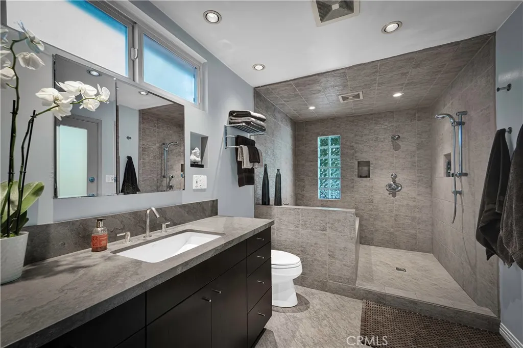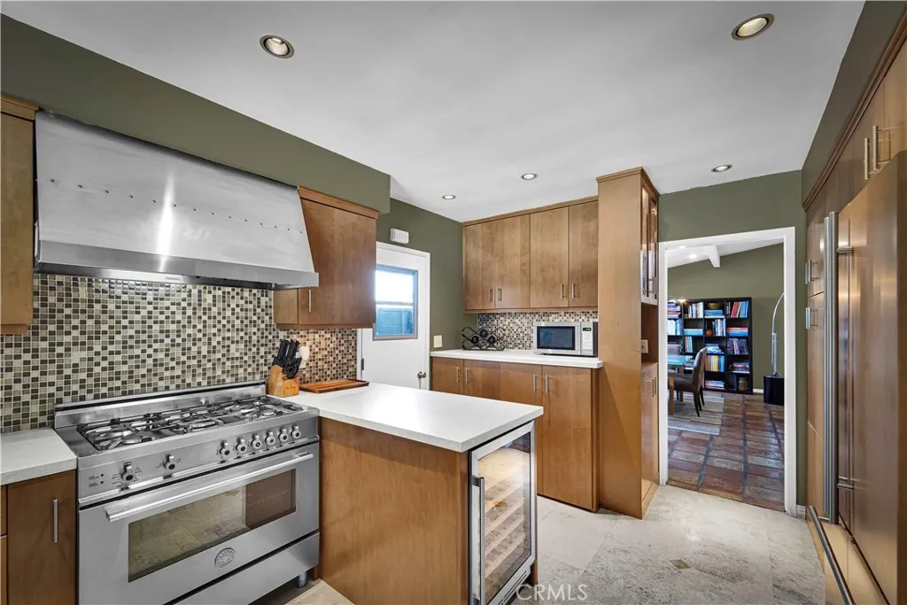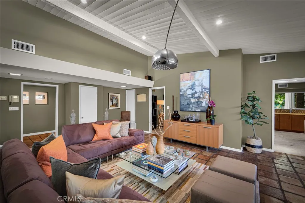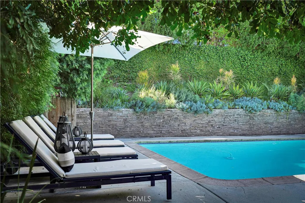 6119 Mary Ellen is all about clean Mid-Century Modern vibes beginning with the clerestory windows - the hallmark of MCM architecture. Upon entering the 4 bedroom 2 bath 2,046 sqft pool home, these windows allow light to flood the living/dining room while maintaining privacy. Dine by the window wall that looks out upon the serene side yard garden with custom stacked stone wall. The living room and dining area feature a vaulted, beamed tongue and groove ceiling and earthy tile floors. The updated kitchen boasts flat-panel cabinetry, under cabinet lighting, NEW dishwasher, quartz countertops, travertine floors, breakfast bar, custom bar area, washer/dryer and plenty of storage. Opening to the kitchen, the family room has access to the covered outdoor kitchen, lanai, pool and beautifully landscaped backyard. Entertain year-round in this gorgeous setting that feels like resort! All 4 bedrooms are off the same hall on the south side of the home. The main ensuite has access to the backyard, a custom closet/dressing area and spa-like bathroom complete with elegant tub and shower 'wet room.' The updated hall bath easily services the 3 additional bedrooms and has dual sinks, limestone counters, soaker tub/shower and travertine floors. Enjoy the privacy this swanky home offers located at the end of the cul-de-sac in one of Valley Glen's finest neighborhoods, and just steps away from the beautifully maintained Valley Glen Community Park. Easy access to freeways, NoHo West and Valley College. Hurry! See this one before it is going going gone!