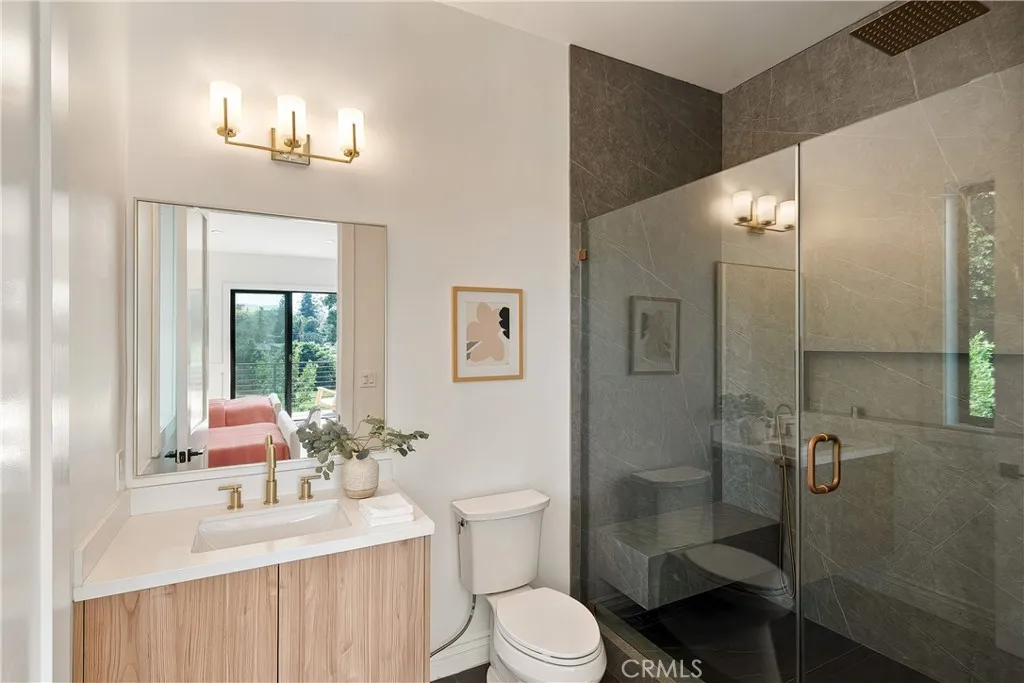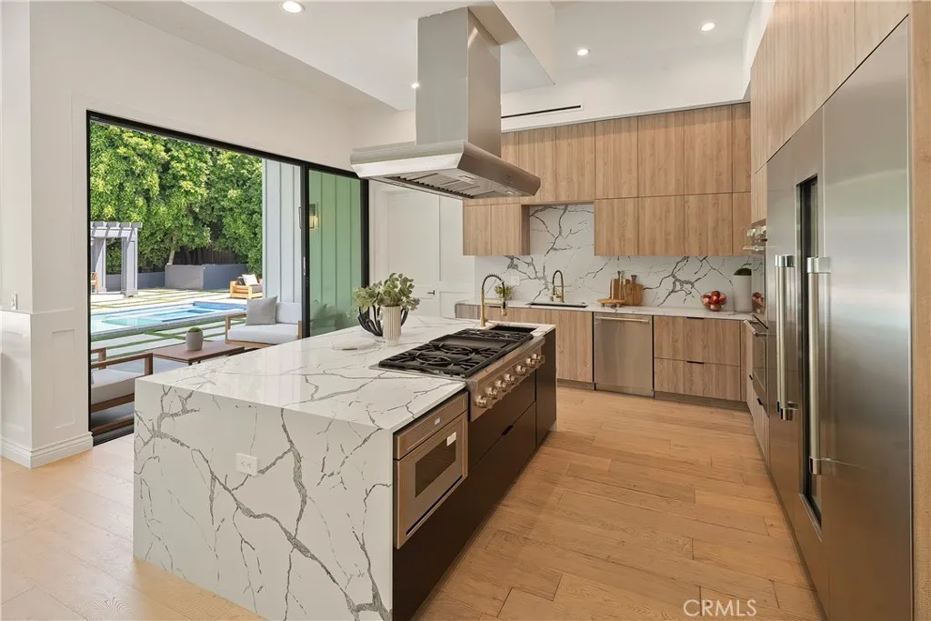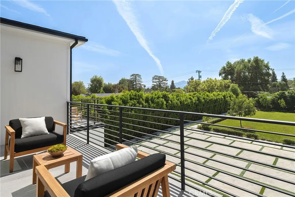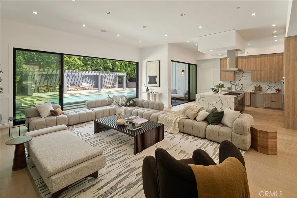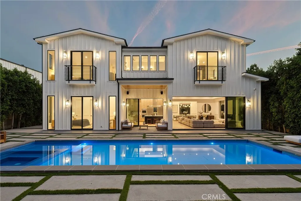 Tucked behind private gates on an expansive half acre lot, this newer construction home is strategically set back from the street and surrounded by mature privacy hedges to create a quiet secluded retreat. An inviting foyer welcomes you into a bright and airy open-concept floor plan defined by lofty ceilings and an abundance of windows that flood the space with natural light. At the heart of the home lies a showstopping chefs kitchen, equipped with high-end Thermador appliances, an impressive waterfall island and walk-in pantry. The adjoining family room is spacious and boasts an oversized sliding glass door that opens seamlessly to the entertainers backyard, allowing for true indoor-outdoor living. Outside, enjoy a refreshing dip in the sparkling pool/spa or relax poolside under the shade of the pergola. The main level also offers a formal living and dining room designed for elevated entertaining, along with two ensuite bedrooms and a stylish powder room. Upstairs, four generously sized ensuite bedrooms are complemented by a versatile loft and dedicated laundry room. The primary suite features a custom walk-in closet and spa-inspired bathroom, complete with a soaking tub, rainfall shower, smart toilet and double vanity. Additional highlights include a security system, built-in speakers throughout, a two-car garage and sprawling grassy front yard. Ideally located within the award-winning Colfax School District, nearby top private schools, and just moments away from the Studios, Ventura Boulevards renowned shopping and dining, the Studio City Farmers Market, Tujunga Village