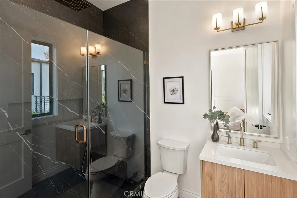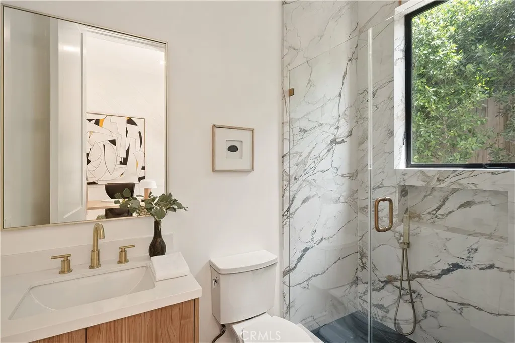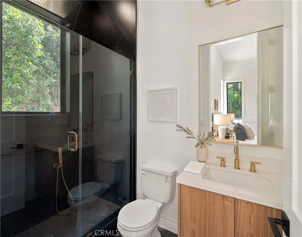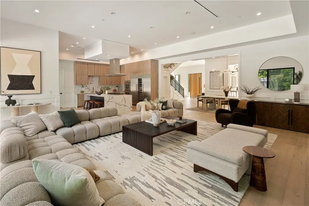 Tucked behind private gates on an expansive half acre lot, this newer construction home is strategically set back from the street and surrounded by mature privacy hedges to create a quiet secluded retreat. An inviting foyer welcomes you into a bright and airy open-concept floor plan defined by lofty ceilings and an abundance of windows that flood the space with natural light. At the heart of the home lies a showstopping chefs kitchen, equipped with high-end Thermador appliances, an impressive waterfall island and walk-in pantry. The adjoining family room is spacious and boasts an oversized sliding glass door that opens seamlessly to the entertainers backyard, allowing for true indoor-outdoor living. Outside, enjoy a refreshing dip in the sparkling pool/spa or relax poolside under the shade of the pergola. The main level also offers a formal living and dining room designed for elevated entertaining, along with two ensuite bedrooms and a stylish powder room. Upstairs, four generously sized ensuite bedrooms are complemented by a versatile loft and dedicated laundry room. The primary suite features a custom walk-in closet and spa-inspired bathroom, complete with a soaking tub, rainfall shower, smart toilet and double vanity. Additional highlights include a security system, built-in speakers throughout, a two-car garage and sprawling grassy front yard. Ideally located within the award-winning Colfax School District, nearby top private schools, and just moments away from the Studios, Ventura Boulevards renowned shopping and dining, the Studio City Farmers Market, Tujunga Village