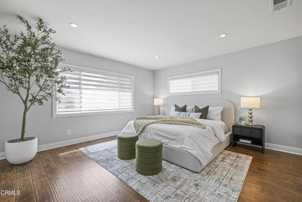 Ideally situated on a serene cul-de-sac in the heart of coveted Sherman Village, this beautifully updated residence offers the perfect blend of sophistication, comfort, and convenience. Enjoy unparalleled accessibility to premier shopping, acclaimed restaurants, Whole Foods, and a variety of nearby amenities.Thoughtfully designed with high ceilings and an abundance of natural light, the home features an open-concept floor plan that seamlessly connects the main living spaces. The chef's kitchen is a standout, boasting granite countertops, stainless steel appliances, a walk-in pantry, and a generous breakfast bar--perfect for casual dining or entertaining.Warm, wide-plank manufactured hardwood flooring flows throughout the home, complementing the spacious bedrooms and updated finishes. The primary living areas open effortlessly to an exquisite outdoor setting, where a custom teak deck and built-in BBQ island create the ideal space for entertaining or al fresco dining under the stars.The detached two-car garage offers flexible functionality--ideal for secure parking, a home gym, studio, or potential ADU conversion (buyer to verify). Lush, drought-tolerant landscaping enhances the curb appeal while providing ease of maintenance.A recent pre-inspection report is available for added peace of mind, underscoring the pride of ownership and meticulous care throughout the property.This is a rare opportunity to own a turnkey home in one of the Valley's most desirable neighborhoods--where style, setting, and substance come together seamlessly.