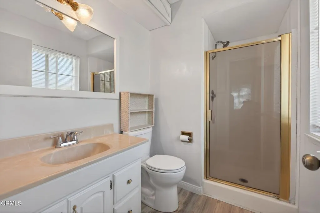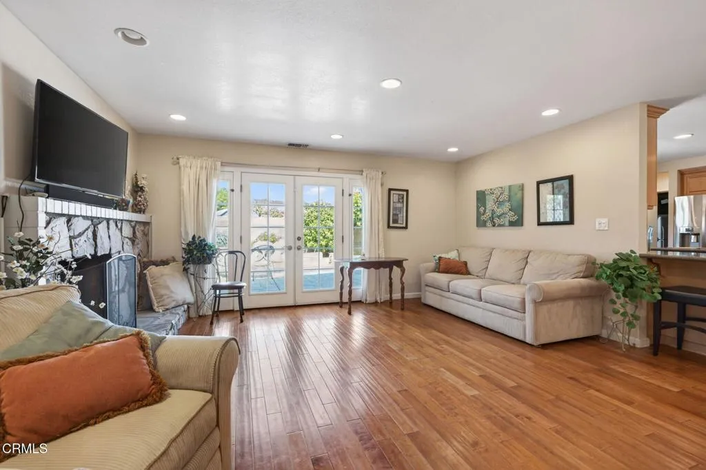 Welcome to this sunny East Ventura single-story pool home offering 4 bedrooms, 2.5 baths, and 1,577 sq. ft. of comfortable living space on a spacious, level lot. This home is special and has been loved and well taken care of for many years. The remodeled kitchen combines modern style with practical functionality. Granite countertops provide a sleek and durable workspace, while recessed lighting and a bay window brightens the room and highlights every detail. The warm wood laminate flooring complements the abundant wooden cabinetry, offering plenty of storage for all your culinary essentials. A spacious kitchen island serves as both a prep area and a casual gathering spot, and the charming breakfast nook is perfect for enjoying morning coffee or family meals. This inviting kitchen is designed for both everyday comfort and effortless entertaining. The natural light-filled living room features a raised-hearth stone fireplace and French doors framing a view of backyard. The attached two car garage is very spacious and will certainly satisfy. The dedicated 1/2 bath is perfect for direct entry from the swimming pool. The backyard is perfect for entertaining, with stamped concrete patios, deep blue, in ground pool, mature landscaping, fruit trees and plenty of room to enjoy the outdoors. The private primary bedroom includes mirrored closet door, a dedicated shower, toilet and sink. The dual-pane windows throughout the home provide plenty of natural sunlight, energy efficiency and quiet comfort. The large and wide driveway may be used for R.V parking or to park additional cars. Thi