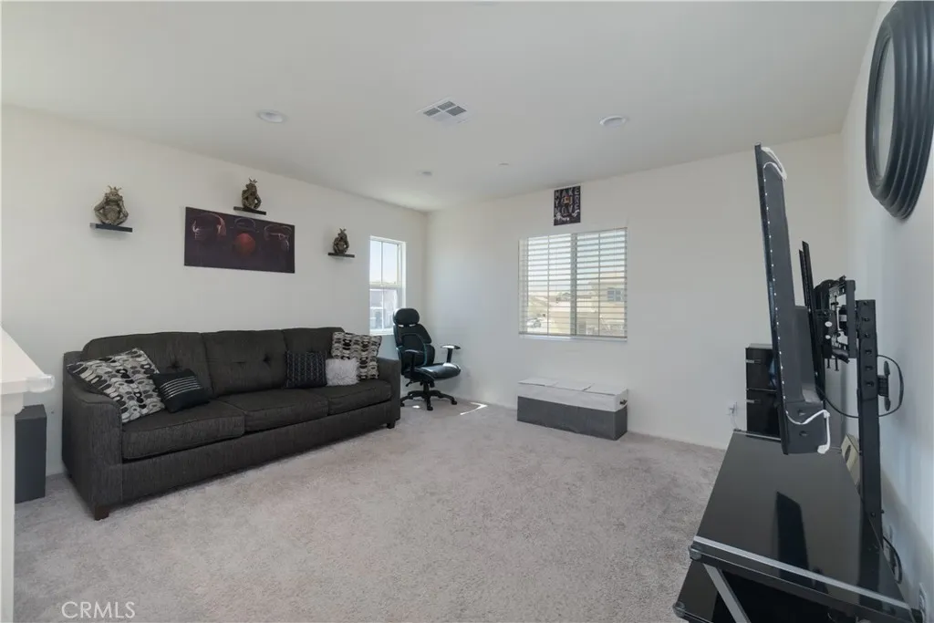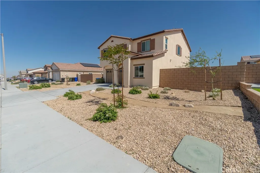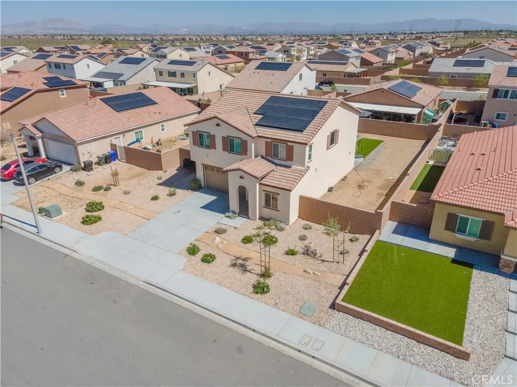 Stunning opportunity to own a beautifully positioned home featuring modern upgrades and a fully paid-off solar system for maximum energy efficiency. This impressive residence offers 2,308 square feet of thoughtfully designed living space, including five spacious bedrooms and three well-appointed bathrooms. The interior features an open-concept floor plan with soaring ceilings and abundant natural light. Key highlights include a convenient downstairs bedroom, a versatile upstairs loft, and a kitchen equipped with generous counter space, large center island, a full back-splash, stainless steel appliances and ample cabinetry. The primary suite serves as a private retreat with a spacious layout and an en-suite bathroom. The exterior boasts fresh paint and excellent curb appeal. Outside, you will find a versatile yard with custom cement work, artificial turf, and an outdoor fire pitperfect for enjoying the Southern California sunshine. Conveniently located near shopping, dining, parks, and commuter routes, this property perfectly combines style, comfort, and location. Schedule a showing today!