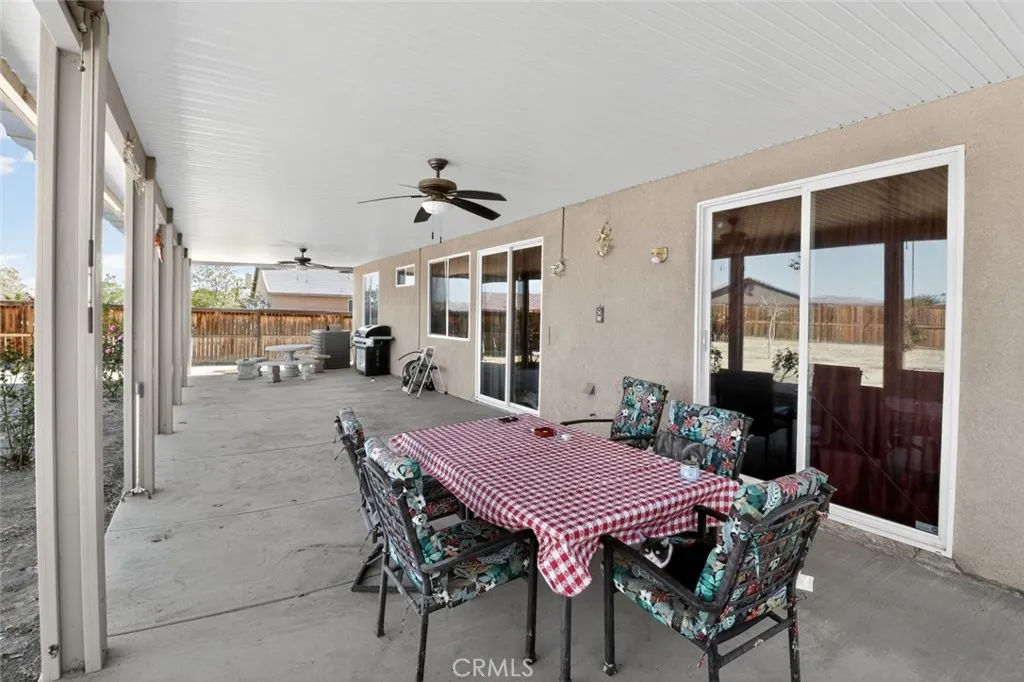 Welcome to 15940 Greyrock Street, a beautifully maintained single-story home offering comfort and modern style in a desirable Victorville neighborhood. This spacious residence features 4 bedrooms, 2 bathrooms, and 2,385 sq. ft. of living space on a generous 8,489 sq. ft. lot. Once inside you'll find vinyl plank wood flooring, ceiling fans throughout, and a bright open layout perfect for everyday living and entertaining. The kitchen and living spaces flow seamlessly, leading to a covered backyard patio with a ceiling fan, ideal for relaxing or hosting guests. The spa-inspired bathrooms feature tiled showers and a soaking tub, creating a serene retreat. Enjoy the convenience of a dedicated laundry room with washer and dryer included, and a front patio that adds charming curb appeal. Complete with an attached 2-car garage, this home blends comfort, style, and functionality, ready for its next owner to move right in.