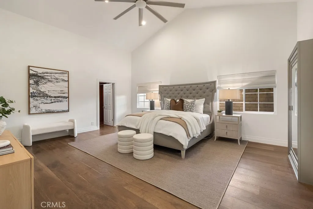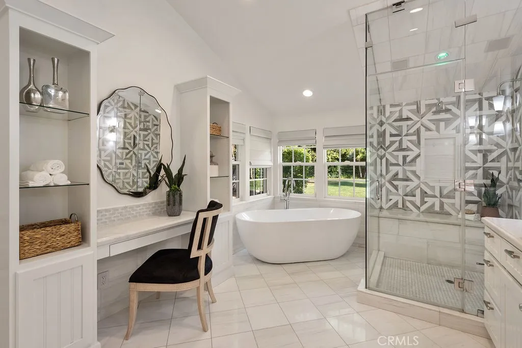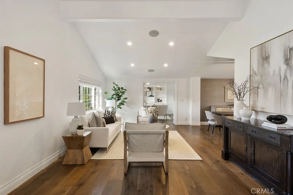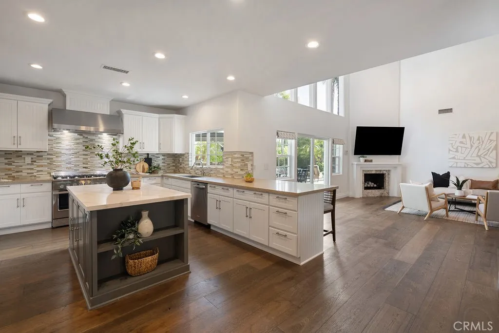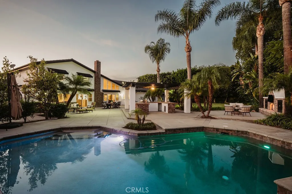Exquisite custom estate on a quiet cul-de-sac in the heart of Villa Park. Set on a sprawling 20,000 sq ft lot, this remodeled residence blends timeless design with resort-style living. A grand double-door entry opens to soaring ceilings, wide-plank wood floors, and light-filled living spaces that flow seamlessly from formal rooms to an expansive great room with a dramatic fireplace and walls of glass overlooking the backyard. The kitchen featurescustom cabinetry, quartz countertops, a commercial-grade range, stainless steel appliances, and an oversized island with seating and backyard views. An adjoining bonus room is perfect for entertaining, complete with a built-in media center, surround sound, and designer bar. The main-level primary suite offers vaulted ceilings, dual closets, and a luxurious spa bath with a steam shower, soaking tub, and custom stone finishes. Outside, enjoy the ultimate Southern California lifestyle with a sparkling pool, sports court, built-in BBQ and bar, outdoor fireplace, full bath, and expansive grassy area. Additional highlights include motorized awnings, whole-home filtration system, integrated sound and security systems, and impeccably maintained landscaping. A rare opportunity to own a true Villa Park showpiece that defines elevated, modern living.