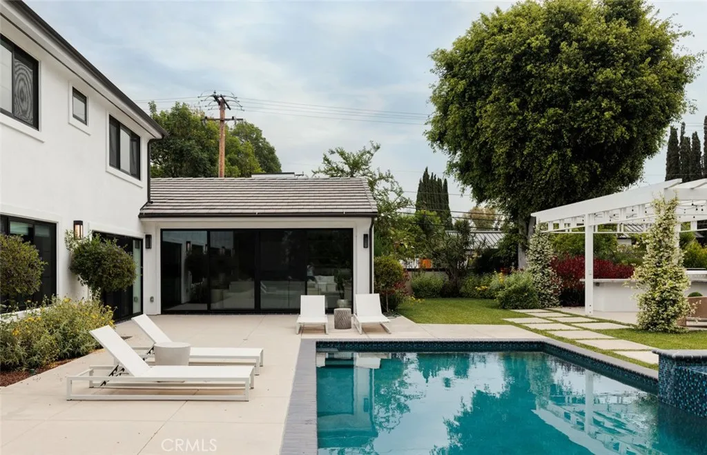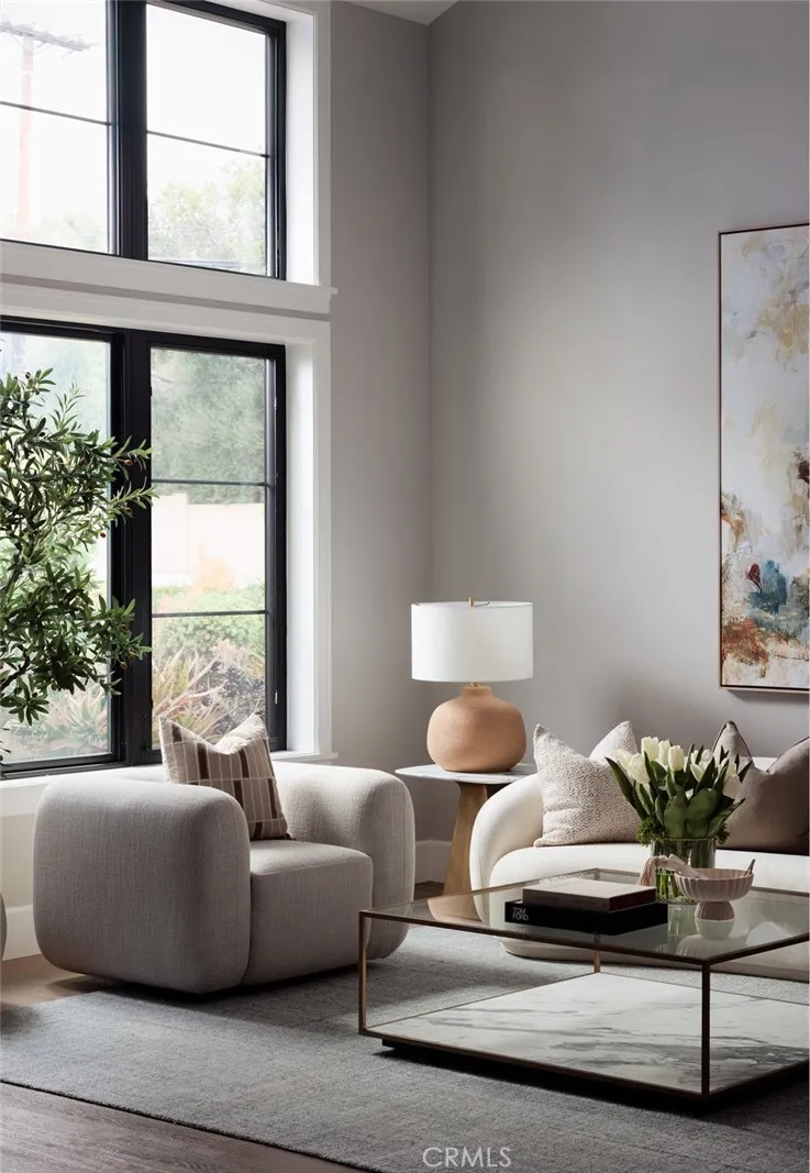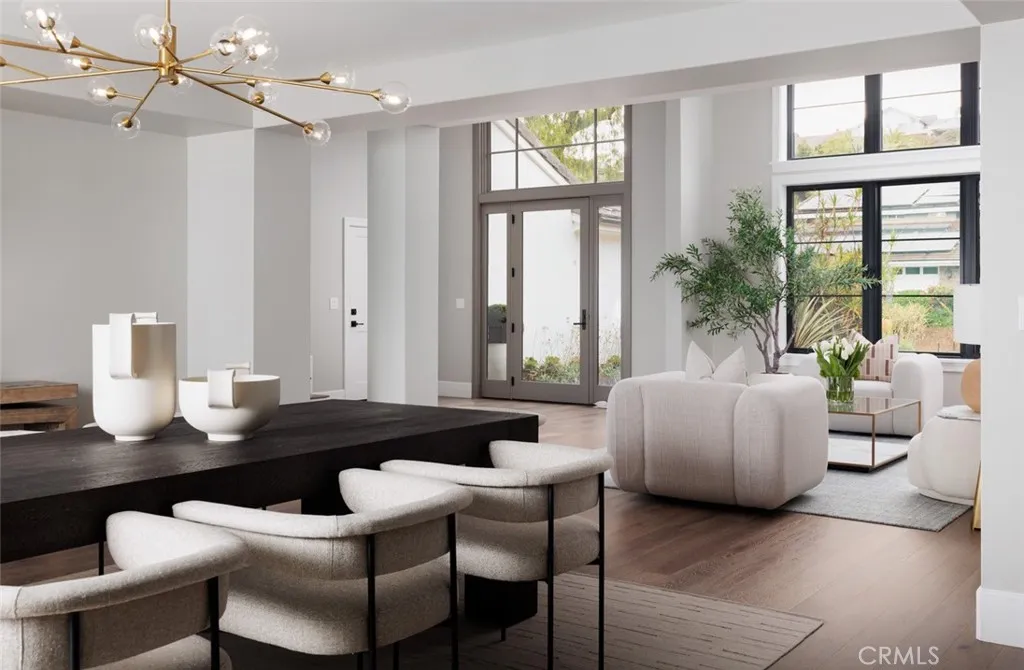 Newly rebuilt in late 2022 from the studs out and completely reimagined and expanded, this fabulous new home in Villa Park is truly unparalleled. Move-in ready, the residence offers the rare and enviable combination of newer construction in an established neighborhood, with mature landscaping and a prime corner homesite of about .46 acres adding to its undeniable appeal. Bathed in natural light that shines through an abundance of large windows, the open design showcases a foyer and living room with double-height ceilings, a contemporary staircase and a lofty interior balcony above. The grand dining room is certain to be a favorite place to share memorable occasions, and it opens to the backyard, creating a seamless indoor/outdoor vibe. Equally open and stylish, the on-trend kitchen displays white Shaker cabinetry, a large island with bar seating, quartz countertops, subway tile backsplash, a stainless steel pro-caliber range, and a built-in cabinet-matched refrigerator. The kitchen flows effortlessly to a family room that is distinguished by a high ceiling, backyard access, and a stone fireplace flanked by custom built-in shelving and cabinetry. Sophisticated and modern, the homes aesthetic is embellished with warm white and gray hues, wood-plank flooring and chic LED lighting. Five bedrooms plus office/gym and four and a half baths are featured in approximately 4,005 square feet, including ensuite bedrooms, a main-level bedroom, an office, and an upscale-modern primary suite with a vaulted ceiling, freestanding tub, separate shower and two sinks. Grounds are impeccable, wi