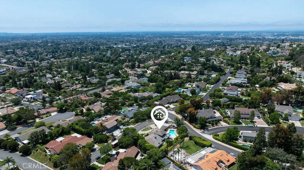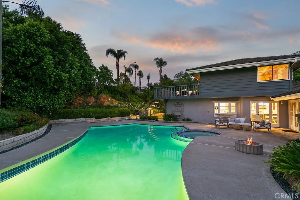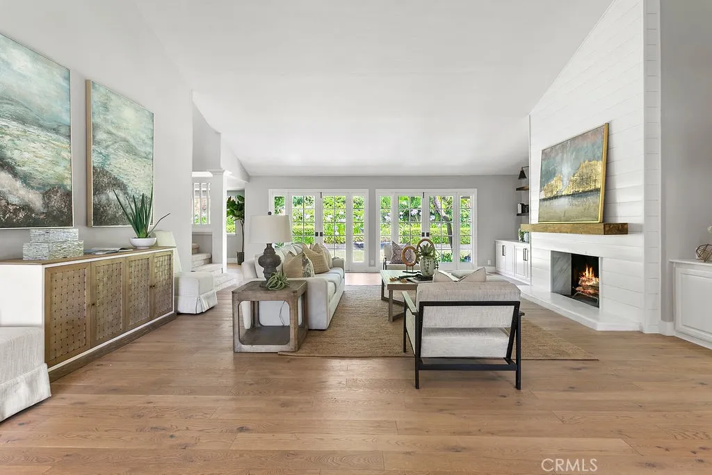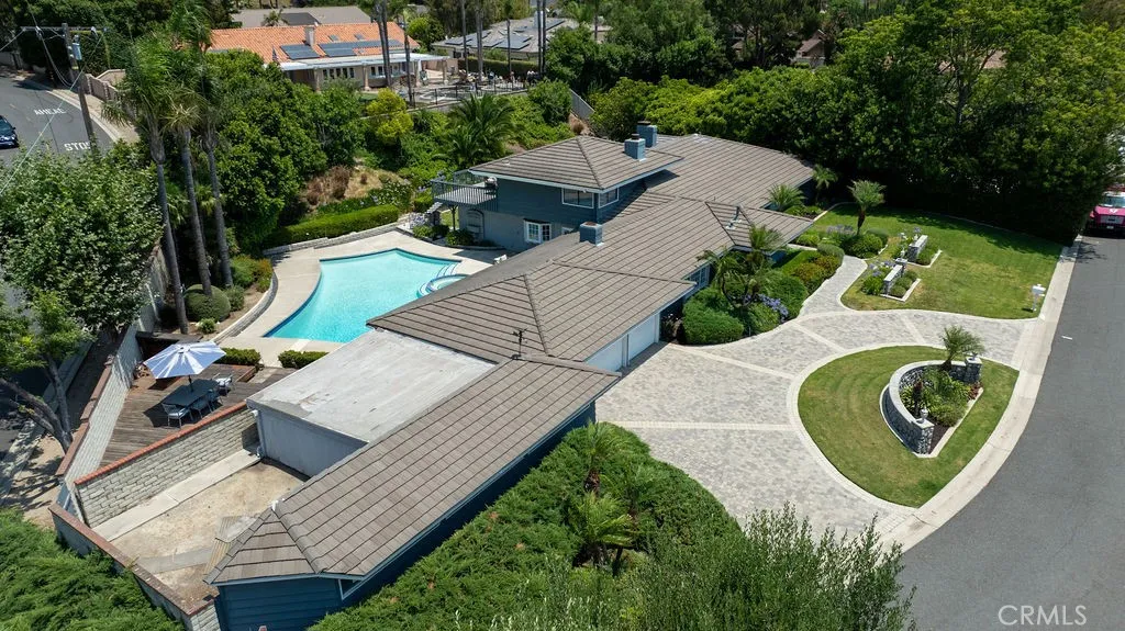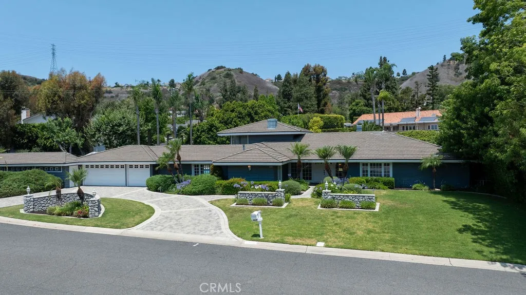 Your luxury dream has arrived with this sprawling Villa Park estate. Tucked away in the private rolling hills of Villa Park, this home has the perfect blend of traditional feel and modern utility. Situated on an expansive half-acre lot and featuring river rock hardscape, lush landscaping, and a circular driveway, the property offers stunning curb appeal and an unforgettable first impression. Step through custom, side-lit double doors into a light-filled and functional entryway. Soaring cathedral ceilings, trendy hardwood floors, and an expansive living room view set the tone immediately. The living room has an impressive custom finished fireplace framed with built in shelving and hutches on either side. French Doors along the back give this entry experience a light and airy feel. Kitchen is a culinary dream with moveable butcher island, custom two-tone cabinets, quartz counters, farm sink, walk in pantry, SS appliance package, and views of the sparkling pool. The kitchen also boasts a custom-built in hutch with glass inlaid uppers, and plenty of room for a kitchen nook table. Family room is once again, spacious and cozy with cathedral exposed beam ceiling details, white block finished fireplace, wainscotting, built in wet bar, hardwood floors and French door wall with views of the sparkling pool and spacious backyard. The primary bedroom is open and inviting with brick finished fireplace, French door wall, and access to a resort like primary bath. The primary bath is complete with spacious walk-in closet, custom cabinets, dual vanity, cosmetics counter, floating shelves, wa