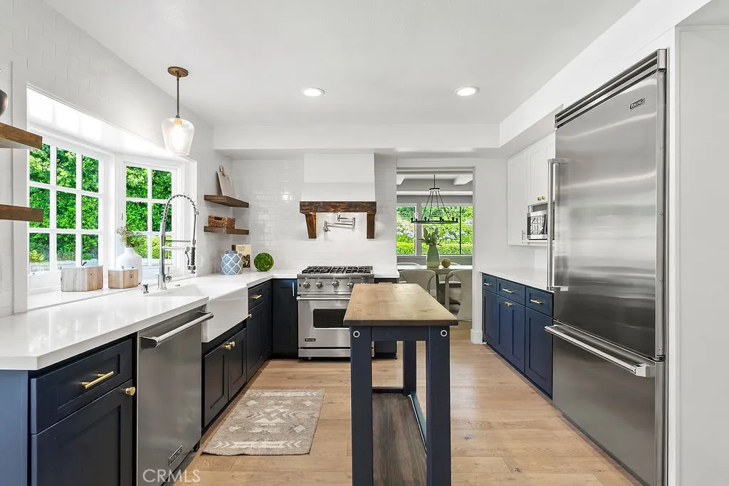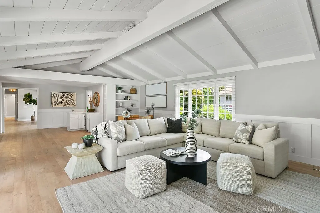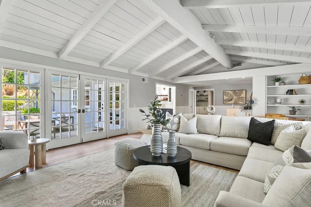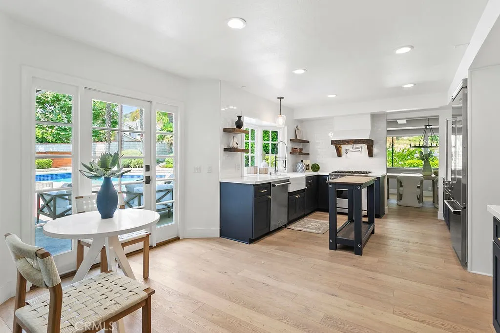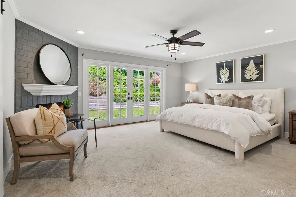 Your luxury dream has arrived with this sprawling Villa Park estate. Tucked away in the private rolling hills of Villa Park, this home has the perfect blend of traditional feel and modern utility. Situated on an expansive half-acre lot and featuring river rock hardscape, lush landscaping, and a circular driveway, the property offers stunning curb appeal and an unforgettable first impression. Step through custom, side-lit double doors into a light-filled and functional entryway. Soaring cathedral ceilings, trendy hardwood floors, and an expansive living room view set the tone immediately. The living room has an impressive custom finished fireplace framed with built in shelving and hutches on either side. French Doors along the back give this entry experience a light and airy feel. Kitchen is a culinary dream with moveable butcher island, custom two-tone cabinets, quartz counters, farm sink, walk in pantry, SS appliance package, and views of the sparkling pool. The kitchen also boasts a custom-built in hutch with glass inlaid uppers, and plenty of room for a kitchen nook table. Family room is once again, spacious and cozy with cathedral exposed beam ceiling details, white block finished fireplace, wainscotting, built in wet bar, hardwood floors and French door wall with views of the sparkling pool and spacious backyard. The primary bedroom is open and inviting with brick finished fireplace, French door wall, and access to a resort like primary bath. The primary bath is complete with spacious walk-in closet, custom cabinets, dual vanity, cosmetics counter, floating shelves, wa