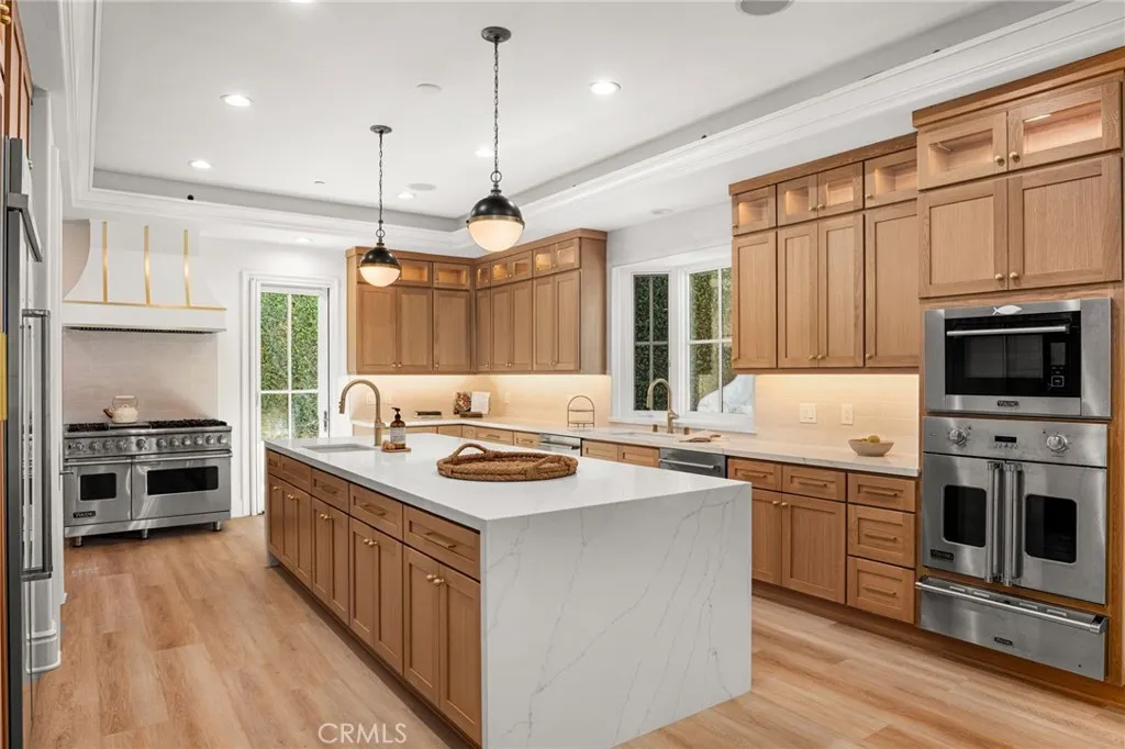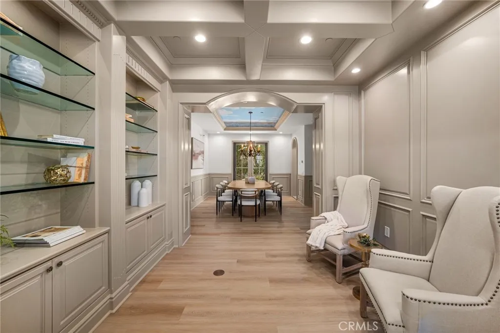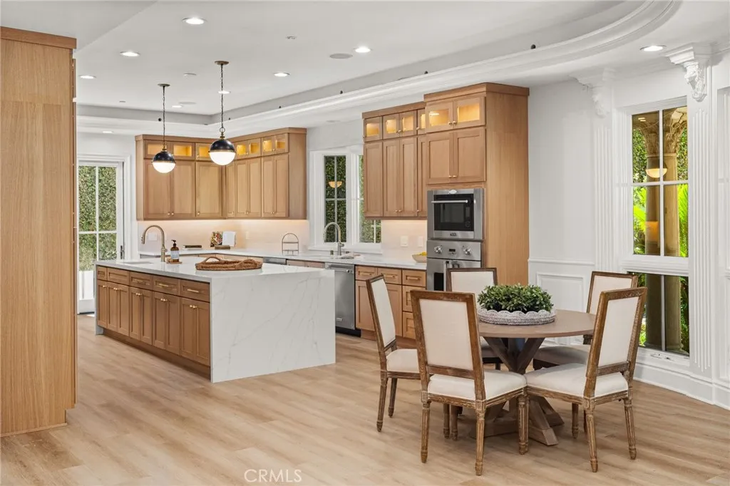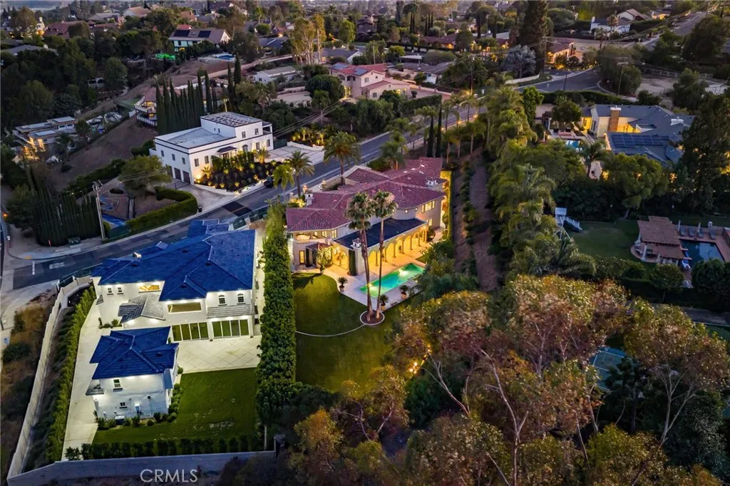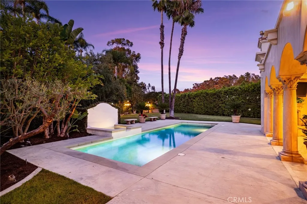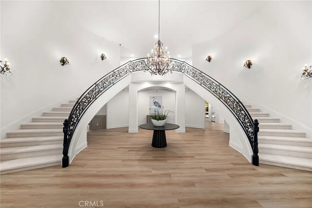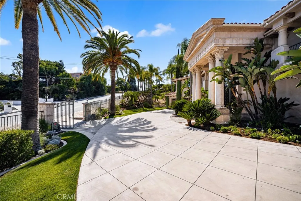 Stunning gated estate in prestigious Villa Park. This once in a lifetime gem known for its exquisite all plaster exterior, grand portico with stunning Venetian columns and ornate iron entry doors that set the stage for the masterpiece of luxury and sophistication that define this stunning home. With 7632 square feet of living space spanning an unprecedented 39,030 sqft lot, this estate offers an unparalleled living experience with all the comforts of home. The grand staircases are adorned in gold leaf accents on wrought iron with a crystal chandelier above and sconces lining the walls of each flight and hand plastered walls are found t/o. An exquisite library off the entry is a true draw with its wainscot walls and gorgeous coffered ceilings. Adjacent is the formal dining room with a custom painted arched ceiling and french door access to the serene outdoor setting. The newly built kitchen is a true showstopper as sleek waterfall quartz cascades vertically over the islands edge. Appliances include double dishwashers, a six burner range with double ovens, additional built in oven, microwave, warming door and refrigerator. Entertaining is effortless in the expansive great room with its dual sitting areas, wine cellar a wonderfully placed long bar with built in storage racks, wine refrigerator, sink and an abundance of cabinetry. The five bedrooms offered includes one main floor bedroom with private access and an en-suite with it's own egress to the splendor of the private outdoor setting. A residential elevator ensures comfortable access to every level. The primary suite is a