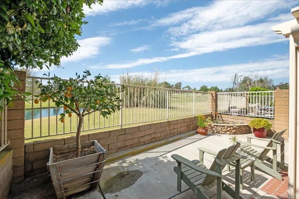 Seller offering buyer concessions toward closing costs or a rate buy down, providing added flexibility for buyers. Rarely available 3 bedroom, 2.5 bath, 1,733 sq ft home in highly desirable Shadowridge Greens, located along Shadowridge Golf Course with golf course and lake views overlooking the first green. The home features paver tile flooring in the entry and kitchen, hardwood flooring in the living room and on the stairs, arched doorways, a fireplace, and vaulted ceilings in the primary suite. Recent upgrades include quartz countertops, updated windows and sliders, recessed lighting, ceiling fans, shutters, a brand-new heating system, and a vinyl patio cover. Outdoor living includes a private gated front patio, providing a peaceful space for entertaining, with a slider from the kitchen nook for convenient access. The backyard patio overlooks the golf course and lake, offering a scenic place to relax. Additional features include inside laundry downstairs, ample storage, and a detached two-car garage with a secure gated entrance. The community offers a pool and spa just a short walk away, with convenient access to parks, shopping, and freeways. A rare opportunity to own a golf course view home in Shadowridge Greens.
