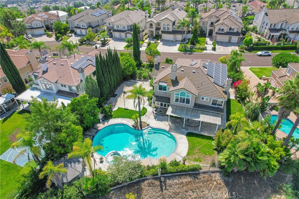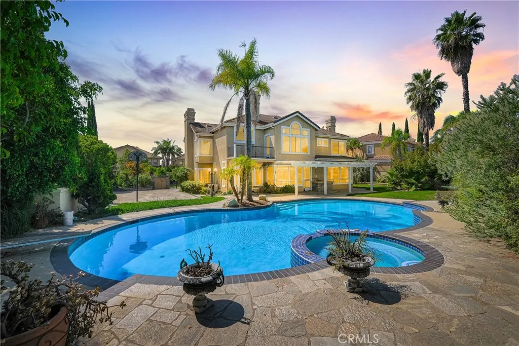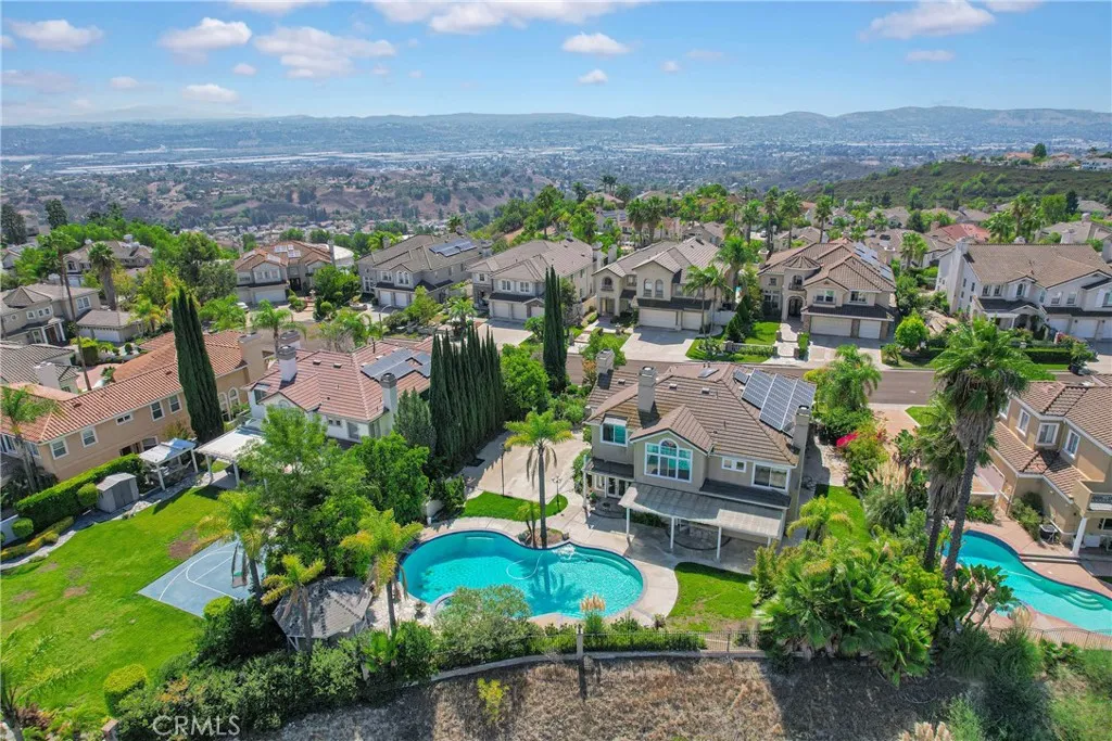 Discover your dream home in this stunning 5-bedroom, 4.5-bath residence boasting and approx. 3,665 sq.ft. of luxurious living space on an expansive 27,000+ sq.ft. lot. This is an elegant south-facing home in the prestigious Belgate Estates of Walnut. Step inside to find a formal living room with soaring cathedral ceilings and a separate dining room, perfect for entertaining. The chef's kitchen features upgraded granite countertops and stainless steel appliances, seamlessly opening to a cozy family room complete with a warm fireplace. The main floor includes a convenient en-suite bedroom with its own bathroom, along with a stylish half bath for guests. Upstairs, the expansive master suite offers a private retreat with its own romantic fireplace and a terrace where you can unwind and enjoy picturesque views.The beautifully landscaped backyard is perfect for entertaining with a private pool, patios, and breathtaking hillside and city light views. Additional highlights include 26 pieces paid-off solar panels, providing both energy efficiency and cost savings. With a 3-car garage and basketball court. Located in the award-winning Walnut School District, this home is just minutes from Mount Sac College, walking trails, parks, schools, and shopping. A rare opportunity to own a dream estate in one of Walnuts most desirable neighborhoods and enjoy a lifestyle of comfort and convenience!