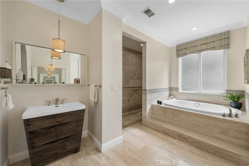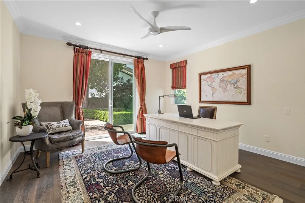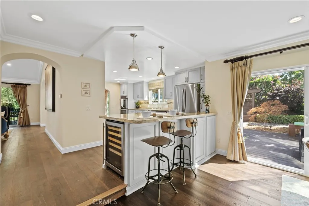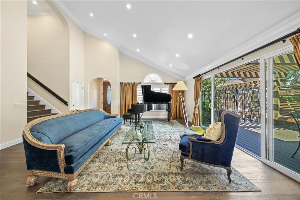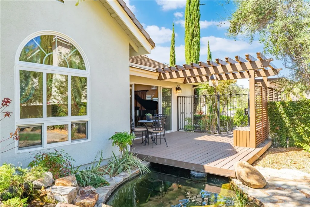 Welcome to a stunningly updated estate in the coveted Snow Creek neighborhood of Walnut, where modern elegance meets resort-style living. This 5-bedroom, 3.5-bathroom residence has been meticulously upgraded to deliver an elevated lifestyle, combining exceptional beauty with seamless functionality. Step through the elegant entry foyer and into a grand living room with a soaring ceiling and a 12-foot-wide, floor-to-ceiling glass door that fills the space with natural light and provides a spectacular view of the landscaped backyard oasis. The adjacent, oversized formal dining room and a separate family room with a cozy fireplace are perfect for family meals and evening relaxation. Both offer direct access to the backyard entertaining area. The chef's kitchen flows seamlessly into multiple living spaces. Flexible and luxurious private quarters The main level features a newer, private two-bedroom suitea versatile space ideal for multi-generational living or a magnificent, multi-room professional office. A master bathroom and a spacious sitting area complete this wing. Both bedrooms have french doors that open to a secluded deck and a tranquil side yard. Upstairs, a luxurious master suite and two additional bedrooms provide ample space for a growing family. The professionally designed, wrap-around backyard is a true outdoor sanctuary. Multiple decks provide ample space for lounging, while a Koi pond and putting green offer serene and playful pastimes. A built-in fire pit creates a cozy focal point for evening relaxation, and the outdoor kitchen and dining area make summer entert