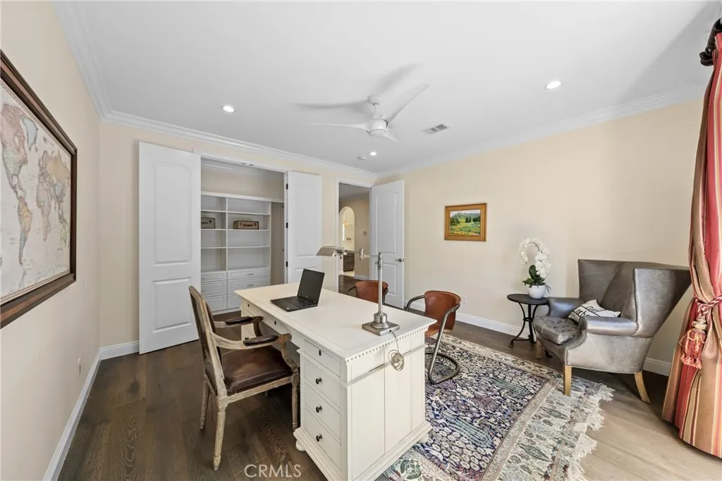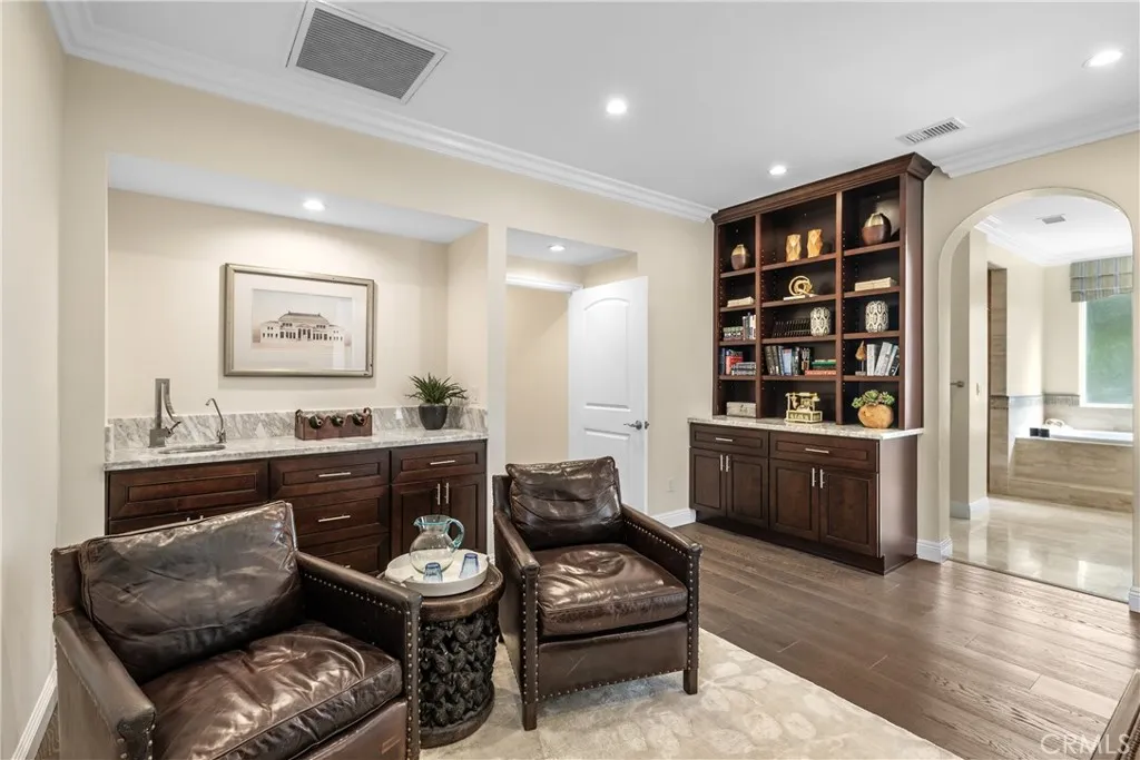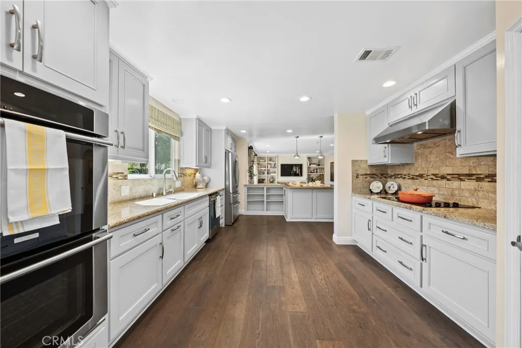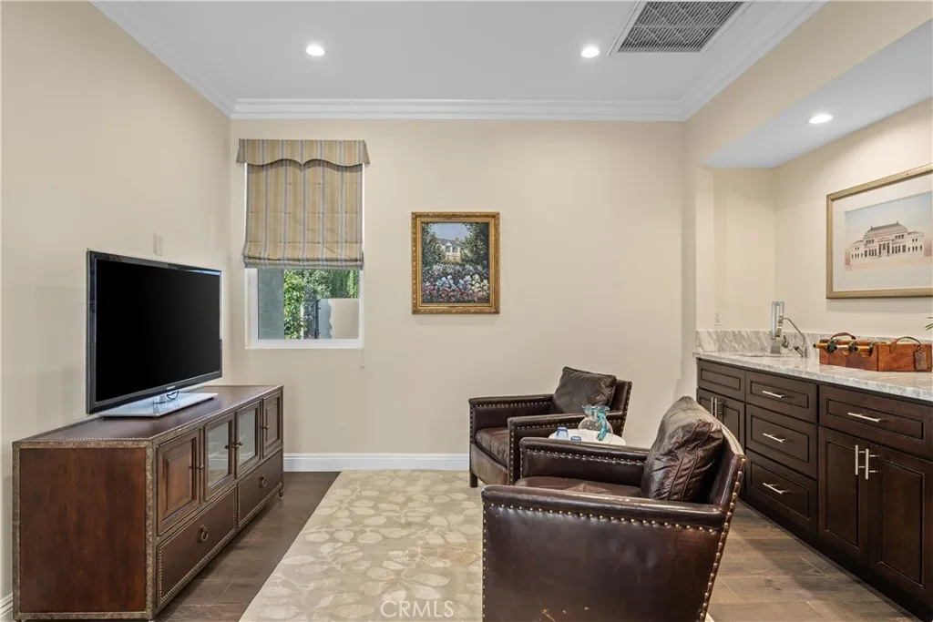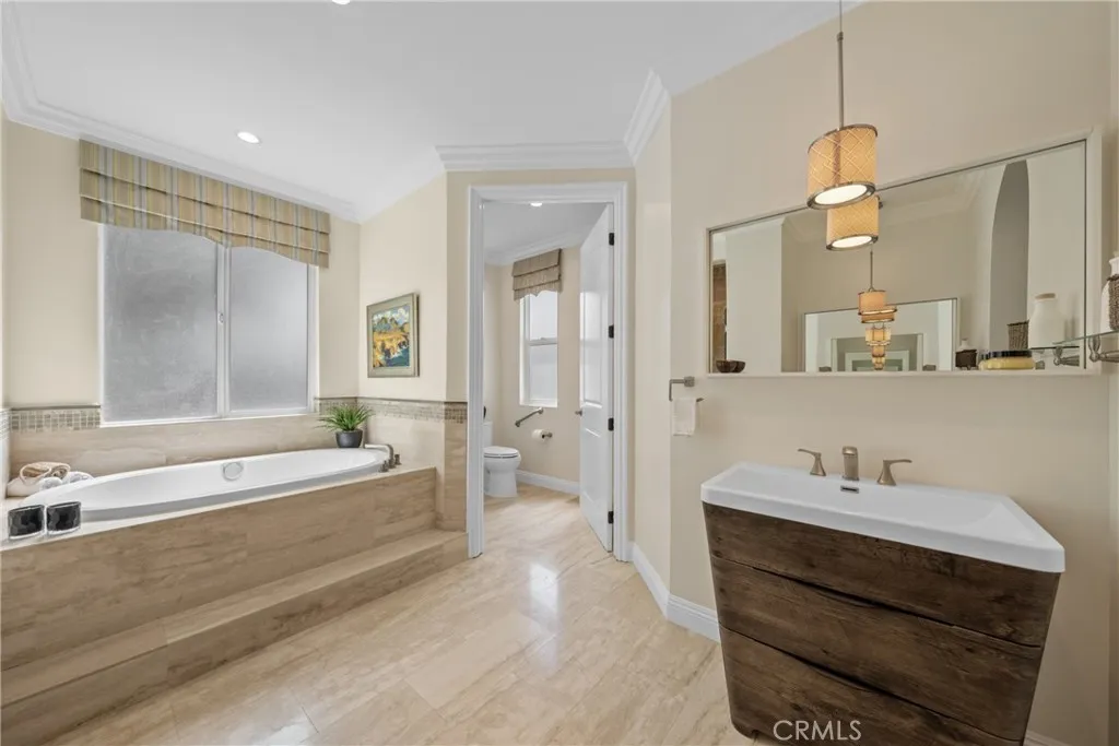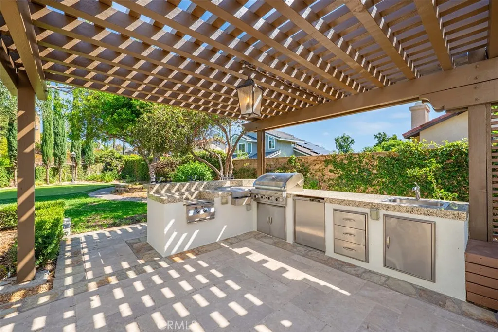 Welcome to a stunningly updated estate in the coveted Snow Creek neighborhood of Walnut, where modern elegance meets resort-style living. This 5-bedroom, 3.5-bathroom residence has been meticulously upgraded to deliver an elevated lifestyle, combining exceptional beauty with seamless functionality. Step through the elegant entry foyer and into a grand living room with a soaring ceiling and a 12-foot-wide, floor-to-ceiling glass door that fills the space with natural light and provides a spectacular view of the landscaped backyard oasis. The adjacent, oversized formal dining room and a separate family room with a cozy fireplace are perfect for family meals and evening relaxation. Both offer direct access to the backyard entertaining area. The chef's kitchen flows seamlessly into multiple living spaces. Flexible and luxurious private quarters The main level features a newer, private two-bedroom suitea versatile space ideal for multi-generational living or a magnificent, multi-room professional office. A master bathroom and a spacious sitting area complete this wing. Both bedrooms have french doors that open to a secluded deck and a tranquil side yard. Upstairs, a luxurious master suite and two additional bedrooms provide ample space for a growing family. The professionally designed, wrap-around backyard is a true outdoor sanctuary. Multiple decks provide ample space for lounging, while a Koi pond and putting green offer serene and playful pastimes. A built-in fire pit creates a cozy focal point for evening relaxation, and the outdoor kitchen and dining area make summer entert