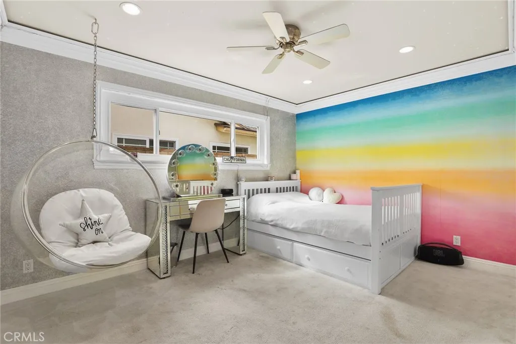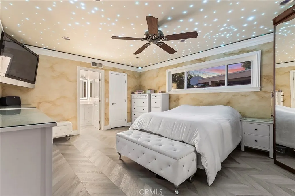 Welcome to this beautifully reinvented 4 bedroom, 3 bathroom home in the heart of West Hills. Featuring 1,918 sq ft of living space on a generous 8,906 sq ft lot of immaculate, taken care of landscaping, this residence has been thoughtfully updated from top to bottom with modern finishes and quality upgrades. The open floor plan offers a spacious living room, formal dining area, built-in kitchen dining nook, and a convenient laundry room off the kitchen. The oversized 2-car garage and large driveway provide parking for up to 6 cars along with abundant storage, while the expansive entertainers backyard is perfect for gatherings and outdoor living. Recent improvements include all new windows except one (2020), a new roof with radiant heat shield sheathing (2020), smooth stucco finish (2020), remodeled dining/fireplace room (2020), new HVAC ducting (2022), a fully remodeled primary bath and new primary flooring (2024), enlarged HVAC returns for higher efficiency (2024), two additional remodeled bathrooms (2025), and a new electrical panel (2025). Excellent storage inside and outside the home includes multiple deep closets and a waterproof outdoor built-in storage room. Located on a quiet street at a stop sign, this home enjoys the privacy and low traffic of a cul-de-sac without being on one. Designer details include fiber optic star light ceilings in three bedrooms, crown molding throughout, solid-core doors, and instant-on hot water in the bathrooms. With every detail carefully considered and updated, this move-in ready home offers the perfect combination of style, comfort, a