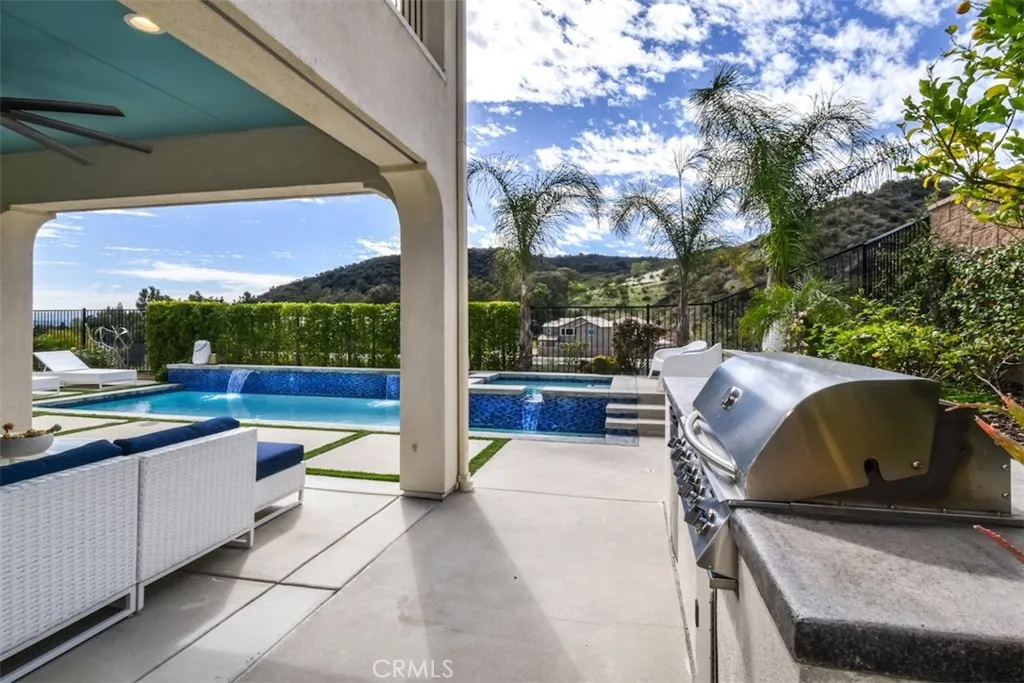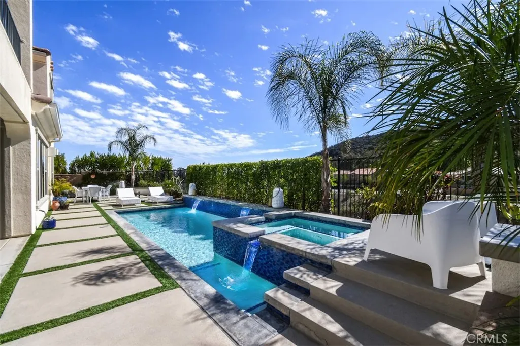 Seller is willing to pay lender 2-1 rate buy down for the buyer! This luxurious home in the prestigious Sterling at West Hills Community is the perfect blend of elegance, comfort, and modern living. With breathtaking mountain views, it truly offers a private oasis. Boasting 5 bedrooms, 6 bathrooms, and a sprawling 4,015 square feet of living space, every inch of this home has been designed with exquisite taste and attention to detail. The main level welcomes you with a flexible office/den space, a powder room, and a formal dining room, setting the tone for a sophisticated living experience. The spacious living room features retractable sliding doors, effortlessly connecting the indoor space to the stunning backyardideal for entertaining. The backyard is a dream, with a sparkling pool, relaxing spa, built-in BBQ area, and cozy fire pit, creating the perfect atmosphere for gatherings. The chefs kitchen is a culinary masterpiece, complete with an oversized island, high-end stainless-steel appliances, quartz countertops, and a large pantry. Additionally, through the kitchen is a mudroom which leads directly to a three-car garage for added convenience. The main level also features a luxurious primary suite, complete with its own washer and dryer, a spa-like bathroom, and a generous walk-in closet. Upstairs, youll find a spacious loft, laundry room, and four additional bedrooms, one of which has been transformed into a gym, along with four bathrooms. This home is the epitome of luxury, designed for those who seek style, convenience, and the ultimate California lifestyle. Its trul