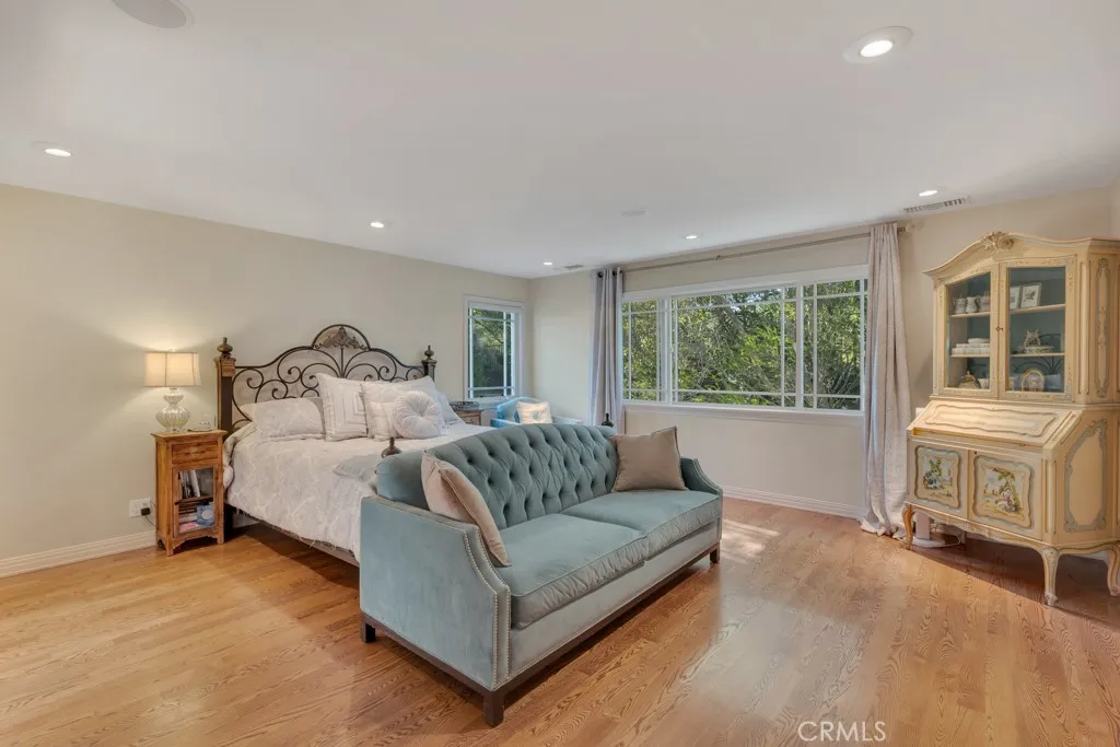This updated and remodeled 5 bedroom and 3 bedroom home is simply stunning! Tucked away at the top of a peaceful cul-de-sac in the coveted Knapp Ranch community and within the Las Virgenes School District, this beautifully home perfectly blends luxury, comfort, and community living. With over 3,100 sq. ft. of stylish, open-concept space on a quarter-acre lot, the home is designed for both relaxed living and effortless entertaining. The chef-inspired kitchen features a custom island, Quartzite countertops, stainless steel appliances, and a built-in bar that flows seamlessly into the sun-filled dining and living areas. Upstairs, the primary suite offers a private sunroom and sweeping Valley views, while the downstairs en-suite bedroom is perfect for guests or a home office. Smart dual-zoned Nest thermostats, paid-off solar, and a three-car garage with EV charging add modern convenience. Step outside to your own resort-style retreat, complete with a sparkling pool and spa, outdoor kitchen, and expansive deck surrounded by peaceful Valley views and exceptional privacy. Additional highlights include new ultra-quiet Chamberlain garage doors, a whole-house Ring security system, and daily Las Virgenes school pickup and drop-off. Close to parks, scenic trails, and shopping, this home offers the perfect balance of elegance, comfort, and community in the heart of West Hills.