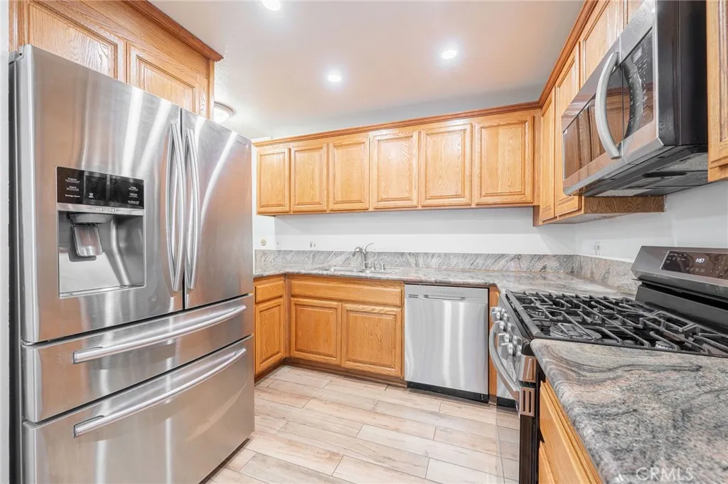Charming 3-Story Townhome in Shadow Ranch. Discover this bright and spacious 3-bedroom, 2.5-bath townhome featuring approximately 1,730 sq. ft. of comfortable living in the desirable Shadow Ranch community. The main level features an open floor plan with hardwood floors, recessed lighting, a cozy fireplace, and seamless flow between the living, dining, and family areas. Enjoy outdoor relaxation on the private balcony and gated front patio. Upstairs, the primary suite includes two closets and an ensuite bath with dual sinks. Additional highlights include a large interior laundry/bonus room with in-unit laundry hookups. A washer and dryer are included for added convenience direct-access two-car garage, and a recently installed HVAC and furnace. HOA fees include water and trash. The community offers well-maintained grounds and a sparkling pool and spa. Conveniently located just moments from shopping and dining on Sherman Way, and near Warner Center, The Village, Topanga Plaza, Fallbrook Mall, and the 101 Freeway