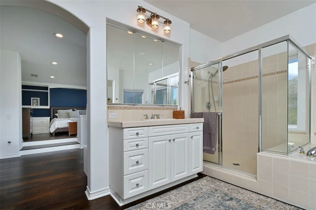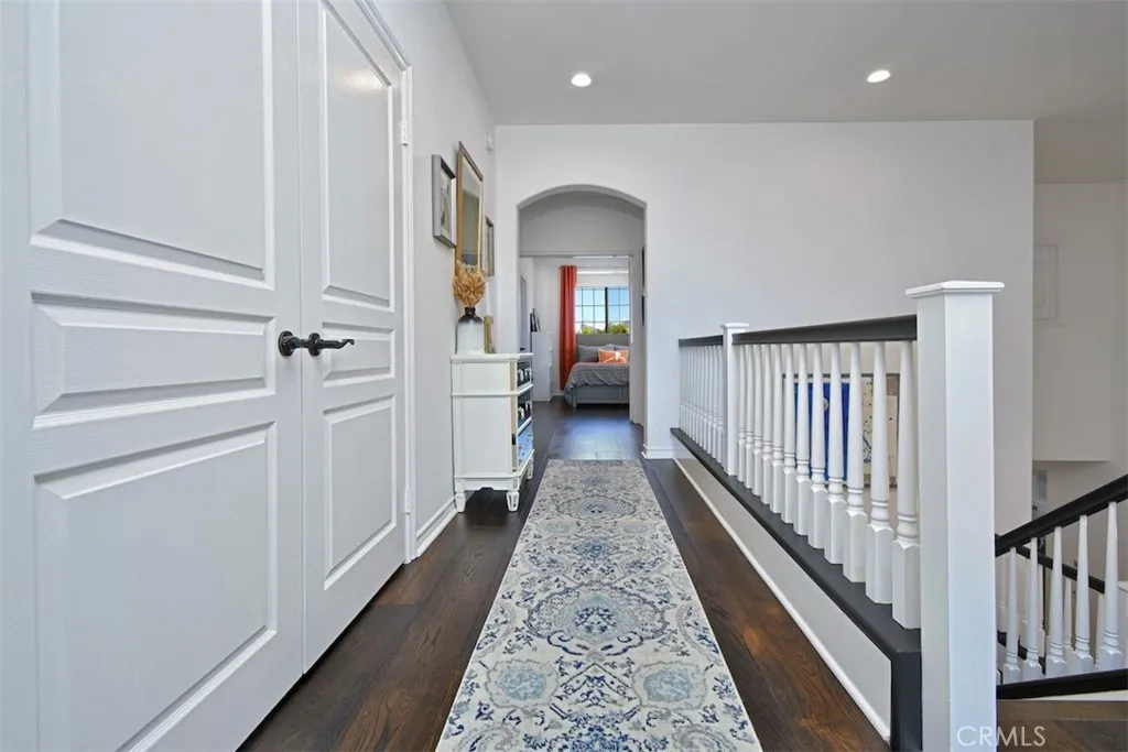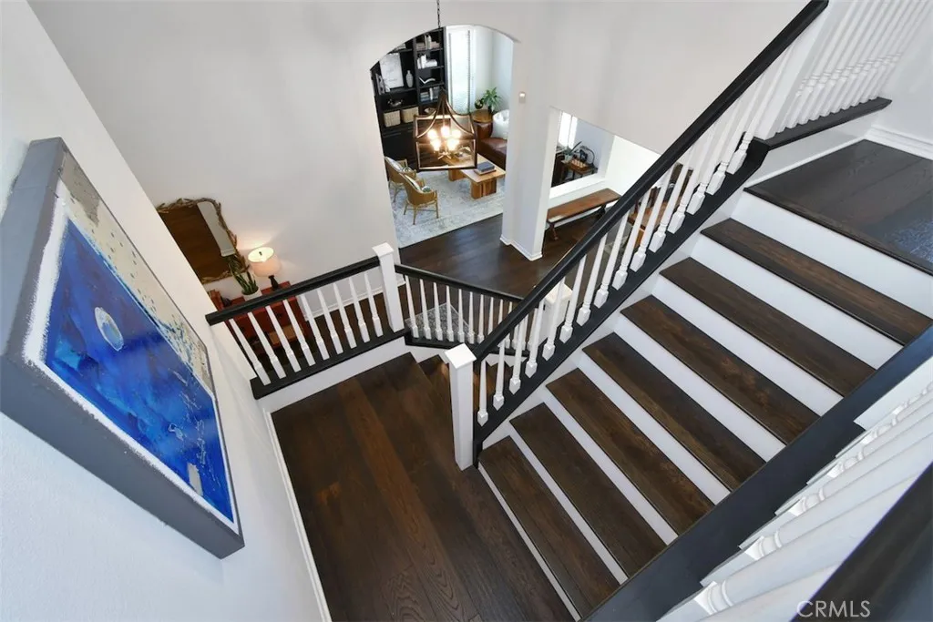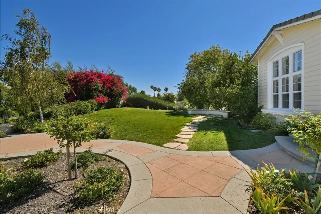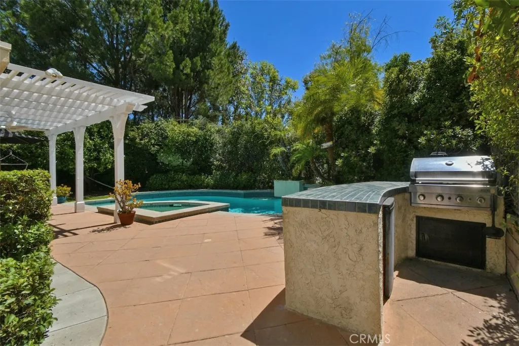 Located within the highly coveted Monte Vista community and boasting five en suite bedrooms, this spectacular pool home offers the perfect combination of comfort, luxury and lifestyle. Enter into an open entryway with soaring high ceilings. Elegant living room with stately built-in bookshelves, and a separate dining room graced by a charming chandelier brings an old world charm to the home. The heart of the home is the chefs kitchen, featuring stainless steel appliances, built-in microwave, walk in pantry and a center island with barstool seating. The kitchen includes a large eat in area. Adjacent family room with a wood burning fireplace and gas hook up option, perfect for those cozy nights at home. The downstairs includes two bedrooms that share a Jack and Jill bathroom, plus powder room. The elegant banister staircase leads to 3 more bedrooms upstairs. The primary suite boasts its own sitting area, direct balcony access overlooking your private backyard oasis, walk-in closet with thoughtful built-ins, and a luxurious attached bathroom with dual sinks, large shower and sunken tub. Adjacent to the primary suite is another en suite bedroom, with the third upstairs bedroom functioning like a Junior suite, boasting double door entry, walk in closet and a sitting area/office. A backyard paradise awaits with a pool and spa that features brand new salt water pool equipment and smart LED lighting, a built-in barbecue, covered pergola, grassy lawn, a lemon tree, dwarf palms for privacy, an herb garden, and even resident crows and rabbits that create a nature-forward retreat. The f