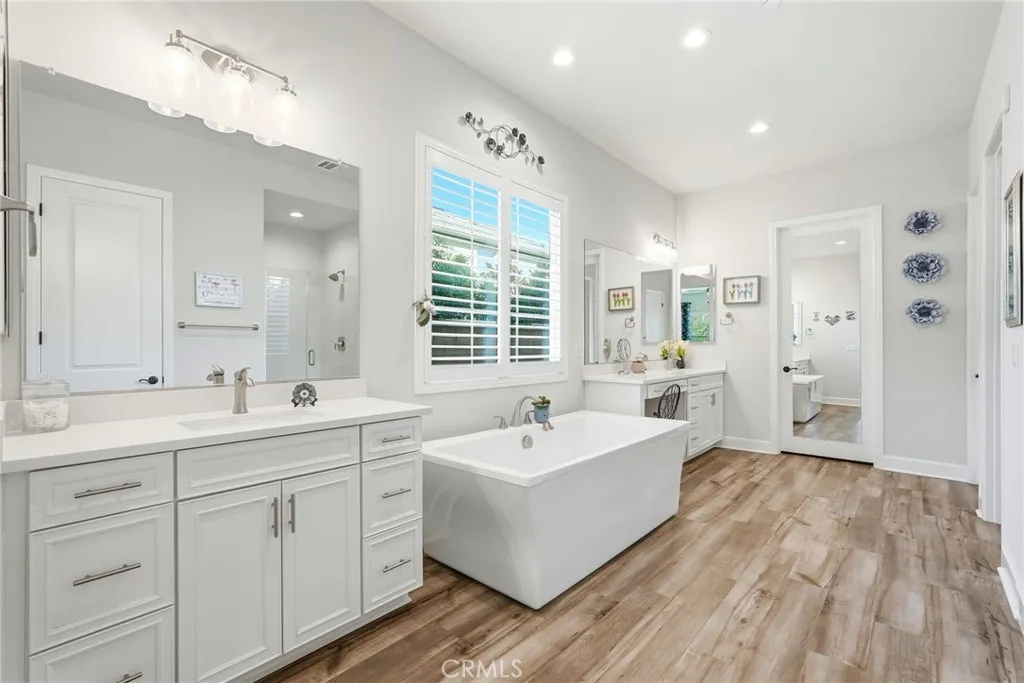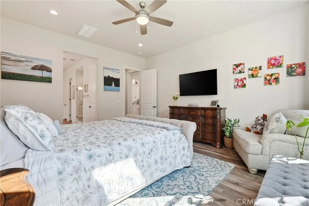 Proud to present this stunning newer construction 5-bedroom, 5.5-bathroom residence located in the highly sought-after Sterling of West Hills neighborhood. This luxurious home, boasting over 4000 square feet of living space, features an open floor plan, tons of closet/storage space and is located on a serene cul-de-sac. The chef's kitchen is a culinary dream, equipped with a spacious center island, wet bar, wine refrigerator, 6-burner stainless steel stove, walk in butlers pantry, and high-end stainless steel appliances. The primary bedroom, conveniently located on the first floor, offers a spa-like en-suite bathroom with dual sinks, dual closets, a soaking tub, and large step-in shower. The cozy living room near the kitchen has an upgraded built in fireplace. Head upstairs where you will find a spacious loft with panoramic views of the surrounding mountains, four generously sized bedrooms each with a walk-in closet & its own private full bathroom. Also conveniently located upstairs is the laundry room with utility sink. Additional features include a spacious 3-car garage with ample storage space and a 240-volt hookup for electric vehicles. The upgraded solar panels are owned, not leased, helping to keep electricity bills at an all-time low. The expansive backyard features a covered patio, large grass area, fruit trees & gated dog run. This property is located within the award-winning El Camino, Hale, and Pomelo school district, and the neighborhood includes a private park plus a roaming security guard after hours.