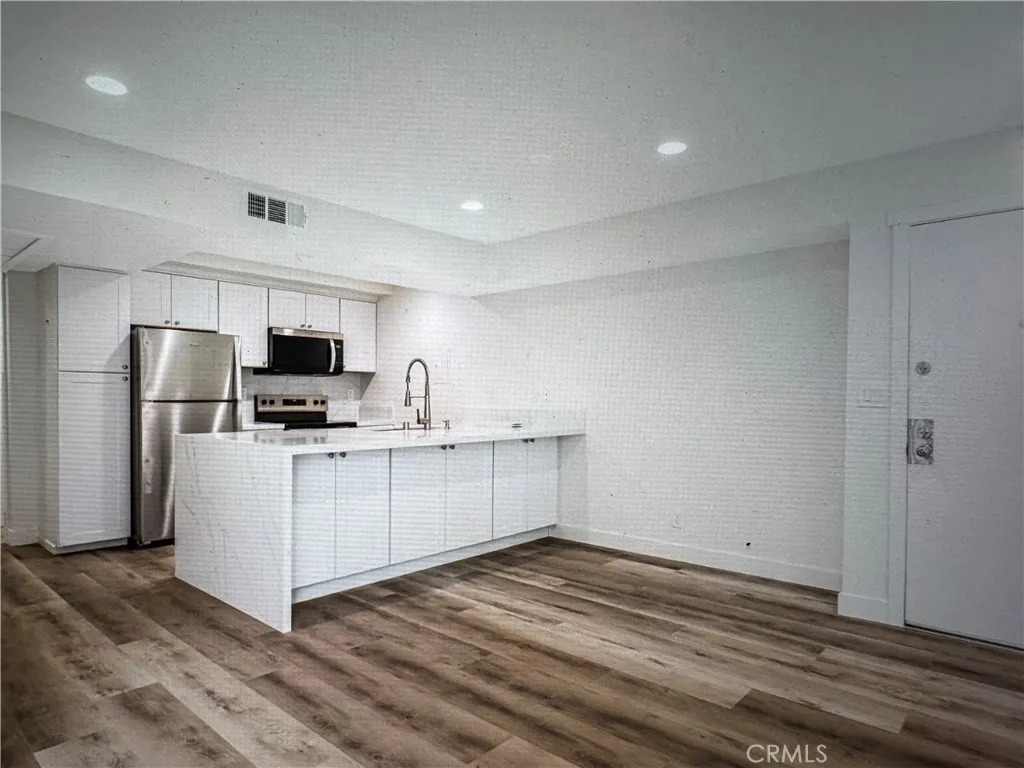 Location Location Location!!! Excellent walkability to restaurants and shopping! Completely Redone!!! New Kitchen and Bathroom remodel! Kitchen boasts new Shaker style cabinets with Quartz Carrera Marble Countertops with a large waterfall side. Cabinets on both sides of the peninsula give an abundance of extra storage, with an incorporated breakfast bar. Brand New Name Brand Stainless Steel Appliances. The bathroom was completely redone as well. New bathtub, shower enclosure, 1x2 Carrera style tile, vanity and mirrors. Fresh paint and new vinyl flooring throughout. The patio is enclosed and offers additional interior flexible space that could be used as a home office or a seating area. Formal Large Living Room offers a lot of natural light from the windows, and has a gas fireplace. Recessed Lighting in Kitchen, Dinning area and bathroom. The Primary Bedroom is large in size and offers a walk-in closet as well as a wall closet. The complex offers a Spa, Bonus Room, Workout Gym, Rooftop Deck and more. Gated garage with 2 tandem covered spaces come with the unit.