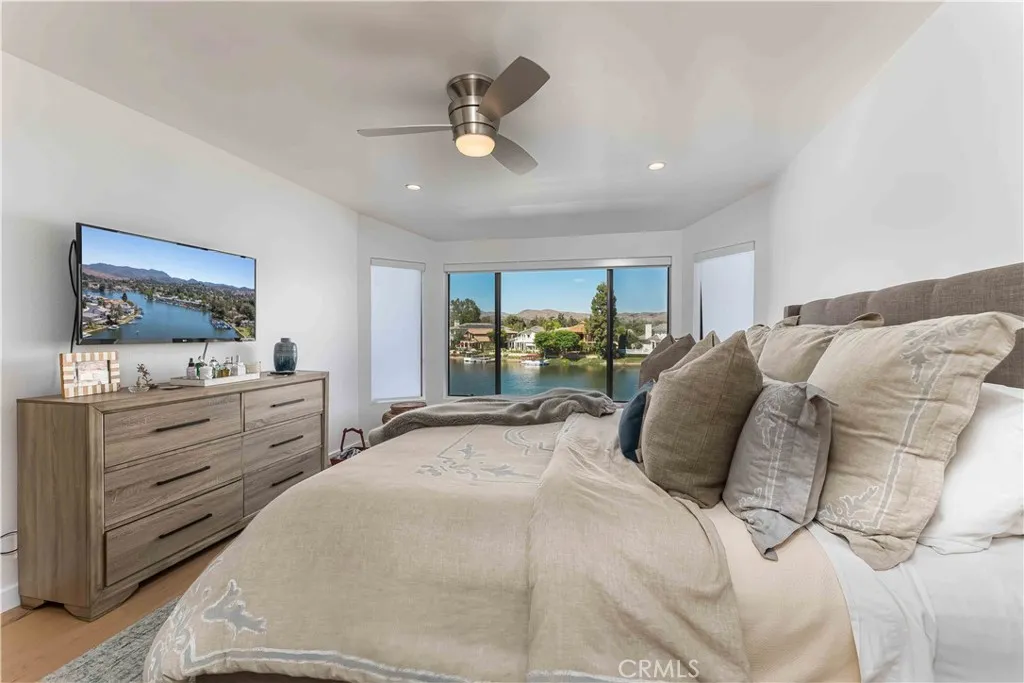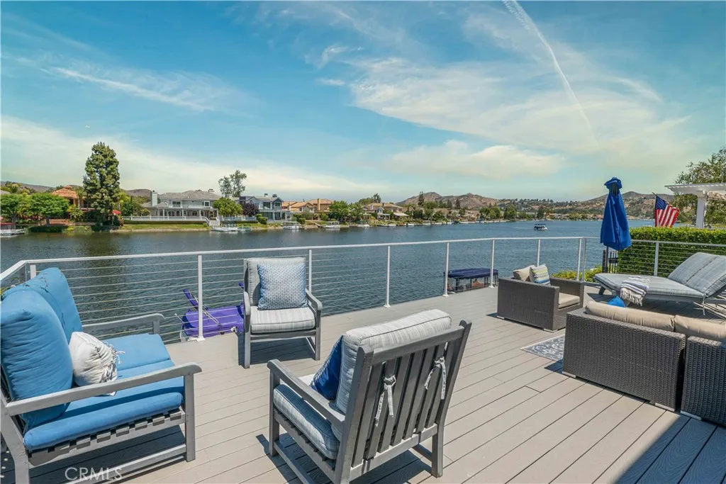 SPECTACULAR waterfront estate located within the exclusive Westshore community! Optimally situated on a lakefront lot with phenomenal main channel views, this home offers both privacy and tranquility from the vast interior windows to the exceptionally large deck with private boat dock. The welcoming four bedroom (one office) and three bathroom floor plan boasts approx 2,000 sqft of living space with an indoor/outdoor lifestyle featuring high ceilings, sleek gourmet kitchen that opens to the spacious family room, and a private office. This residence has been extensively renovated with all of the high-end luxury amenities and workmanship expected. Upstairs, you'll find a large, private master suite--complete with a spacious en-suite bath, extra large walk-in closet, a beautiful second story view with serenity. Live the Westlake Lifestyle with Boating, Fishing, and Lakeside Dining Year-Round. Close proximity to Sherwood Country Club, upscale restaurants & shops; plus, an easy commute to LA & airports.
