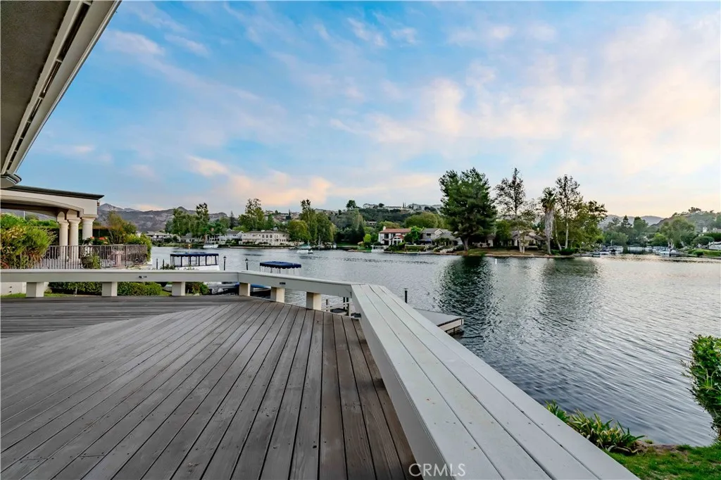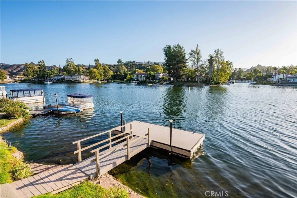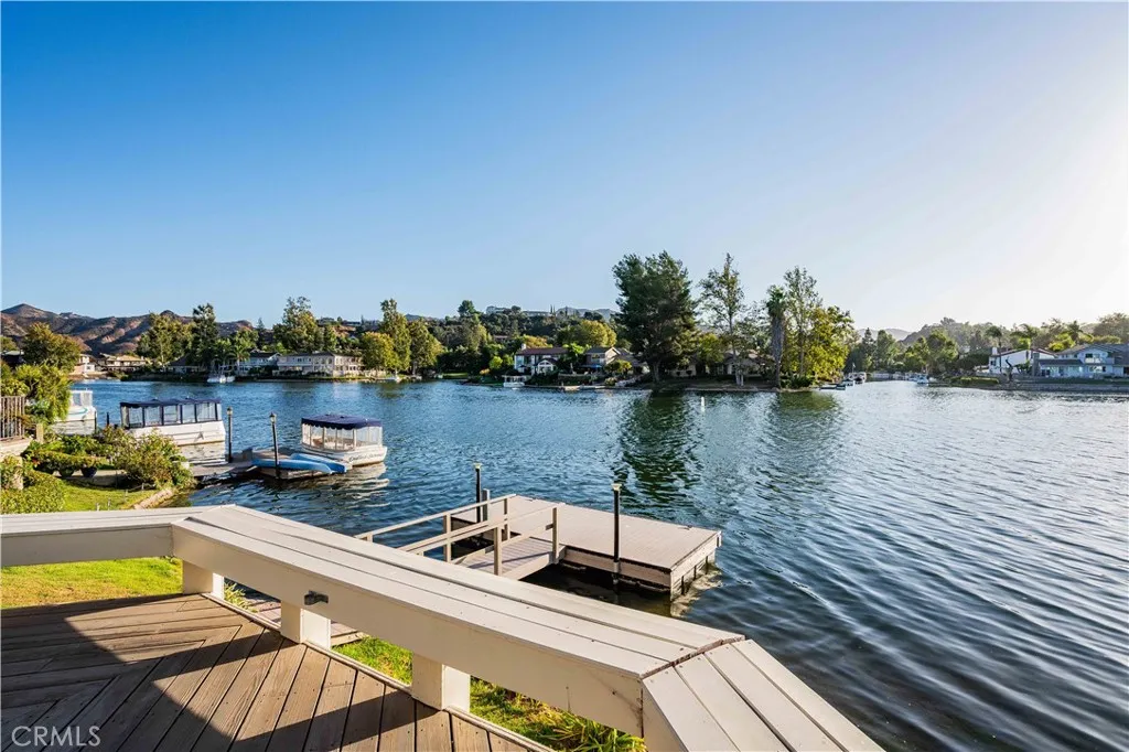 This luxurious single story is situated on the main channel within the prestigious Gated community of Westlake Island, an oasis of beauty and sophistication nestled in the heart of Westlake Village. Stepping into the home you are greeted with an abundance of natural light that floods every corner. This home offers comfortable living spaces that seamlessly integrate with the amazing outdoor entertaining areas creating the ultimate California indoor/outdoor lifestyle home. The kitchen provides stainless steel appliances with custom cabinetry opening to the dining area. The primary bedroom is equally impressive, with picturesque windows that showcase stunning lake & mountains views. The oversize spa like master bath boasts an abundance of closet and storage space. The secondary bedrooms are oversized with plenty of closet space. Walk out to your dock just steps from your patio and enjoy a sunset cruise or dinner at the landing or Boccaccio's on the water. 24 hour guard gated community on the island & conveniently located to all.