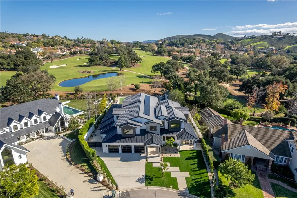 This gorgeous, brand new view estate with a premier location in the heart of North Ranch, is sited at the end of the cul de sac on a privately gated street. Spanning over 9,000 square feet of luxury living (with guest house) and boasting sensational views of the fairway of North Ranch Country Club, the home features a superb, open floor plan that's flooded with natural light and enhanced by top quality finishes throughout. There are six large ensuite bedrooms, including the stellar primary suite with retreat, two sided fireplace, all stone bath with steam shower, room sized custom closet and a big walk-out view balcony. Additional amenities include a beautiful, center island chef's kitchen complete with counter seating, wide open to the big great room with nearly 30' of sliding walls of glass, bringing the outdoors in, plus an adjoining lounge area with back-lit Onyx wet bar & glass encased wine cellar, a media room, and casual living & dining rooms that are perfect for easy entertaining. The spacious grounds include a sparkling pool & spa, your own pickleball court, a large sunken firepit, a big covered patio with space heaters & music, and a charming guest house with an additional bedroom, bathroom & family room. Conveniently located within easy walking distance to North Ranch community park, along with nearby shopping & restaurants, and close to the beaches of Malibu, this true custom estate has much to offer.