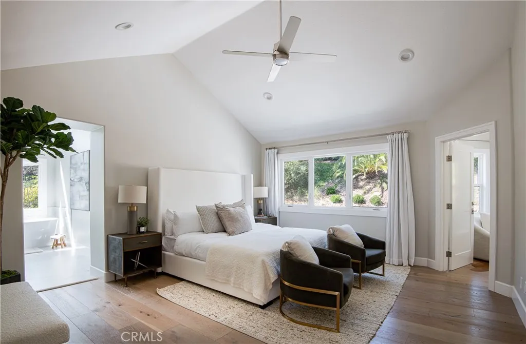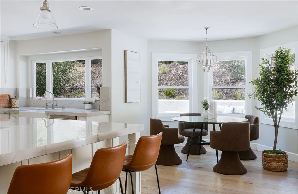 Beautifully updated home located on a quiet cul-de-sac in the highly sought-after Crescent Oaks neighborhood of North Ranch. Situated on an expansive over 15,000 square foot corner lot, this residence offers approximately 3,330 square feet of living space, five bedrooms, and three bathrooms. Featuring a bright and open floor plan, the home welcomes you with a two-story entry, custom staircase, high ceilings, and new hardwood floors throughout. The kitchen is centered around a large island and opens directly to the family room, complete with quartzite countertops and high-end appliances. The flexible layout includes one bedroom on the main level and four upstairs. The primary suite offers a spacious walk in closet and a remodeled bathroom with clean, modern finishes. The private backyard features drought-tolerant landscaping and a custom firepit, with ample space to add a pool. Recent upgrades include new windows, roof, HVAC system, and a tankless water heater. Located within the highly acclaimed Conejo Valley Unified School District, with excellent private school options nearby, and just minutes from shopping, dining, and nearby amenities, set within one of Westlake Villages most desirable neighborhoods.