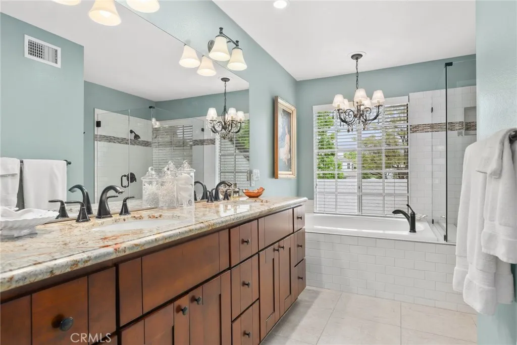 Filled with natural light and thoughtful design, this charming home offers both comfort and versatility. The spacious kitchen features rich wood cabinetry and stainless steel appliancesperfect for everyday meals or entertaining. The open-concept living area includes a cozy fireplace and large windows that brighten every corner. Upstairs, the oversized primary bedroom offers a peaceful retreat with an en-suite bath, while two guest bedrooms and a flexible spaceideal for a home office or denprovide room to suit your needs. Outside, enjoy a lushly landscaped backyard and a front entryway with stylish concrete pavers. HOA amenities include swimming pools, spas, and adjacent grassy areas. Just a block and a half away, North Ranch Playfield offers additional recreation with tennis courts, a playground, soccer fields, sand volleyball, basketball courts, and a walking track nestled among mature trees.