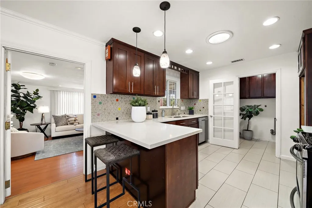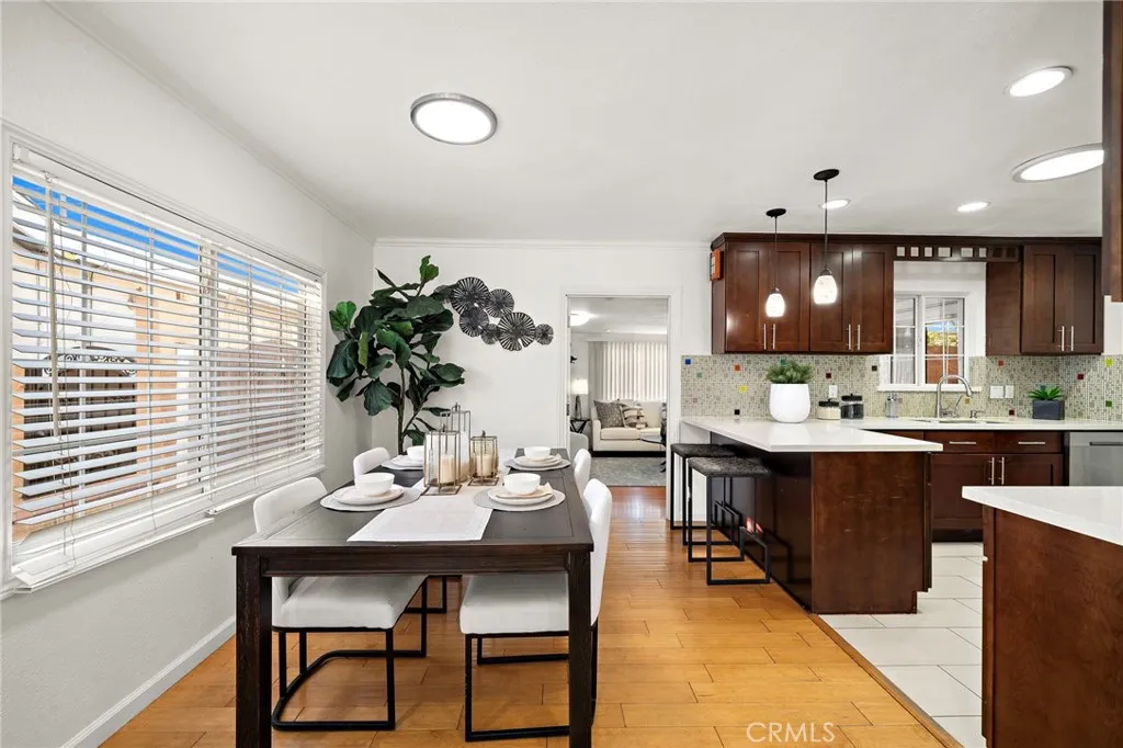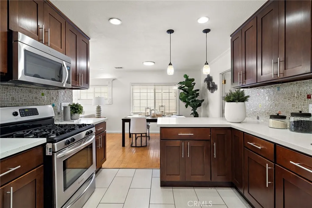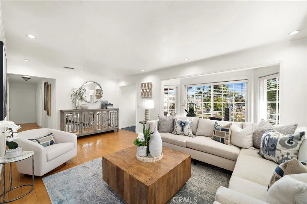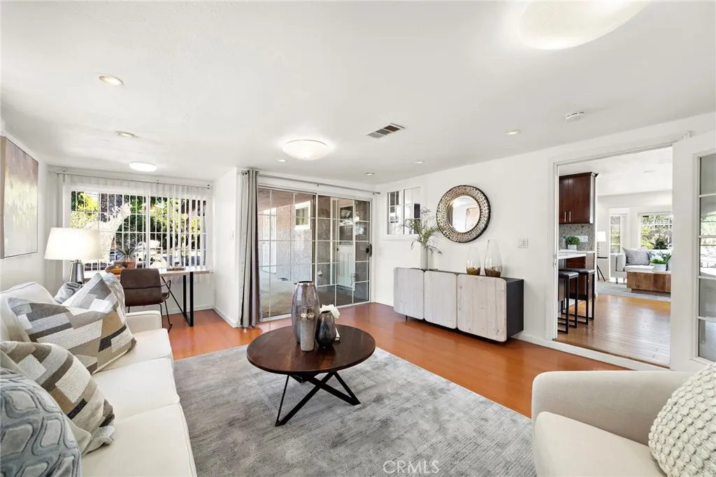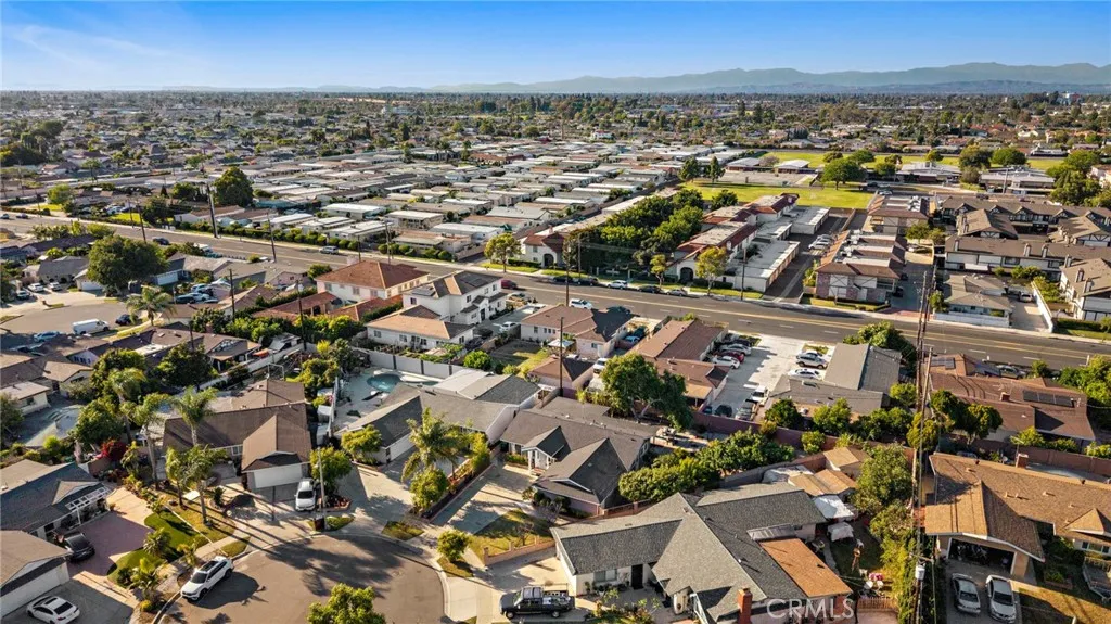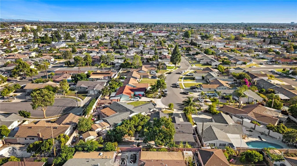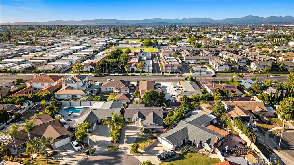 Absolutely stunning, beautifully upgraded and expanded single-story home ideally located at the end of a cul-de-sac on an extra-large 8,320 square foot lot in the heart of Little Saigon, within one of Westminsters most desirable neighborhoods. This exceptional residence showcases refinished hardwood flooring, crown molding, dual pane windows with extensive custom millwork, recessed lighting, mirrored closet doors, custom built-ins, central A/C, and a brand new roof in 2024!! Gorgeous curb appeal welcomes you with an extra-long, wide driveway, stone siding, decorative columns, and a custom front door with dual beveled glass sidelights. Step inside to an elegant marble entry with inlay and a spacious living room featuring a bay window. The open concept floorplan flows seamlessly into the formal dining room and the beautifully remodeled kitchen with tile flooring, quartz countertops, breakfast bar with chic pendant lighting, mosaic tile backsplash, rich cherry wood cabinetry, deep stainless sink, and stainless steel appliances including gas range, microwave, and dishwasher. Just off the kitchen is a convenient inside laundry room with additional storage. The house is 1219 sf as original living space, plus 385 square foot enclosed patio ( permit as enclosed patio only) finally upgrade by owner as family room with wood laminate flooring and French sliders that open to an expansive wrap-around backyard with multiple paver patios with brick accents, a covered patio, block wall fencing, and a variety of mature fruit treescreating your own private orchard with room to add an ADU (su