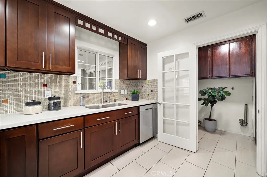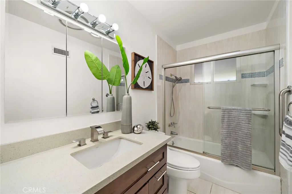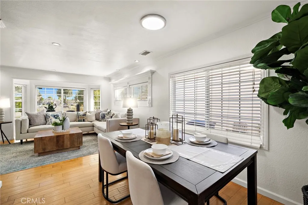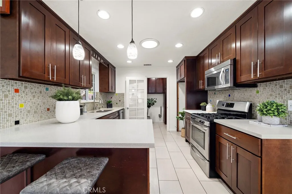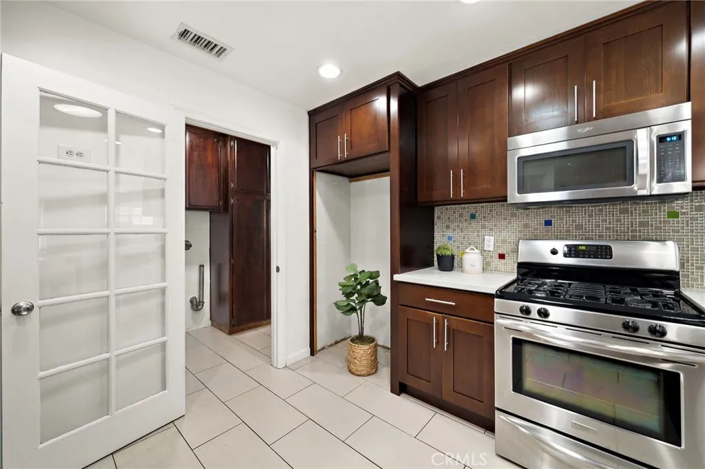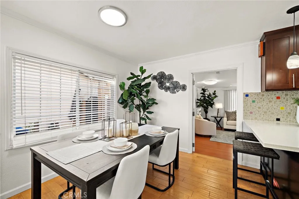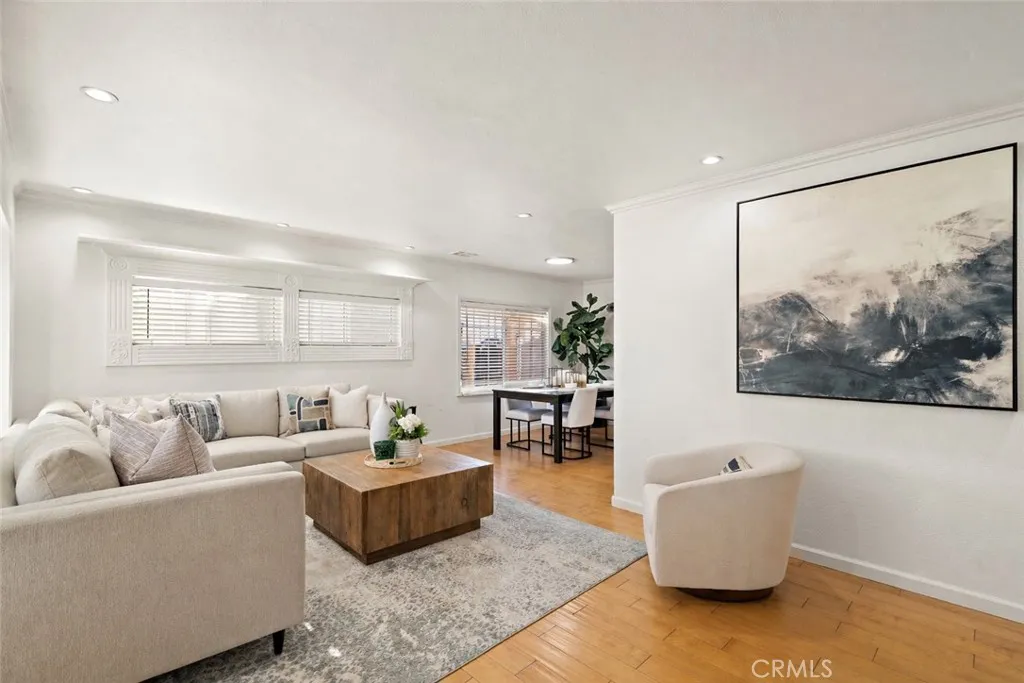 Absolutely stunning, beautifully upgraded and expanded single-story home ideally located at the end of a cul-de-sac on an extra-large 8,320 square foot lot in the heart of Little Saigon, within one of Westminsters most desirable neighborhoods. This exceptional residence showcases refinished hardwood flooring, crown molding, dual pane windows with extensive custom millwork, recessed lighting, mirrored closet doors, custom built-ins, central A/C, and a brand new roof in 2024!! Gorgeous curb appeal welcomes you with an extra-long, wide driveway, stone siding, decorative columns, and a custom front door with dual beveled glass sidelights. Step inside to an elegant marble entry with inlay and a spacious living room featuring a bay window. The open concept floorplan flows seamlessly into the formal dining room and the beautifully remodeled kitchen with tile flooring, quartz countertops, breakfast bar with chic pendant lighting, mosaic tile backsplash, rich cherry wood cabinetry, deep stainless sink, and stainless steel appliances including gas range, microwave, and dishwasher. Just off the kitchen is a convenient inside laundry room with additional storage. The house is 1219 sf as original living space, plus 385 square foot enclosed patio ( permit as enclosed patio only) finally upgrade by owner as family room with wood laminate flooring and French sliders that open to an expansive wrap-around backyard with multiple paver patios with brick accents, a covered patio, block wall fencing, and a variety of mature fruit treescreating your own private orchard with room to add an ADU (su
