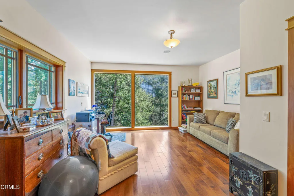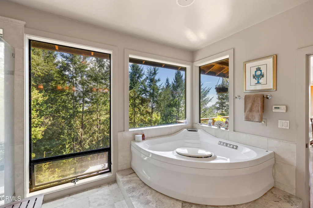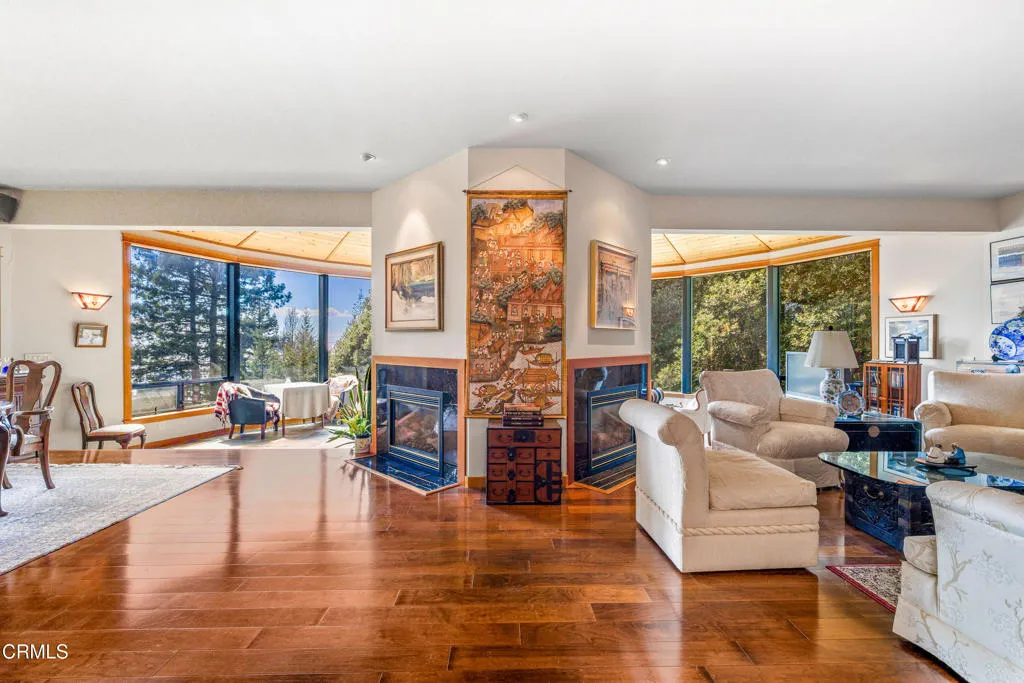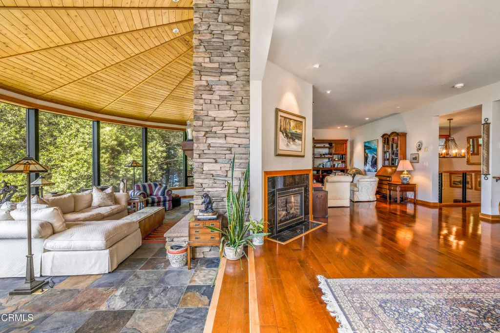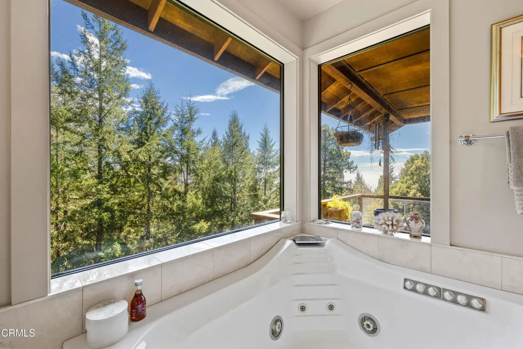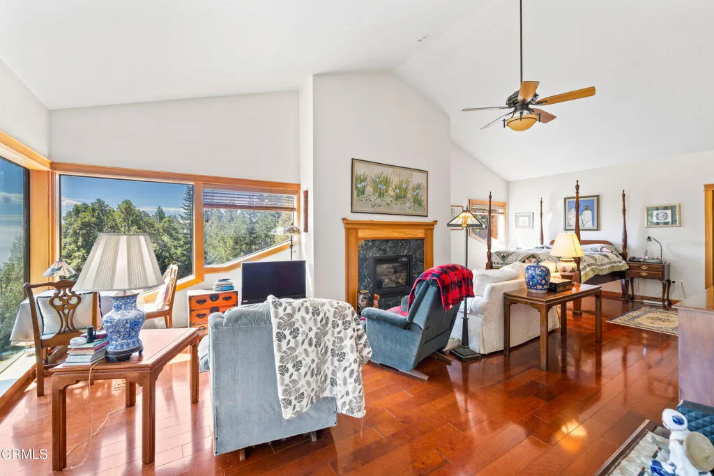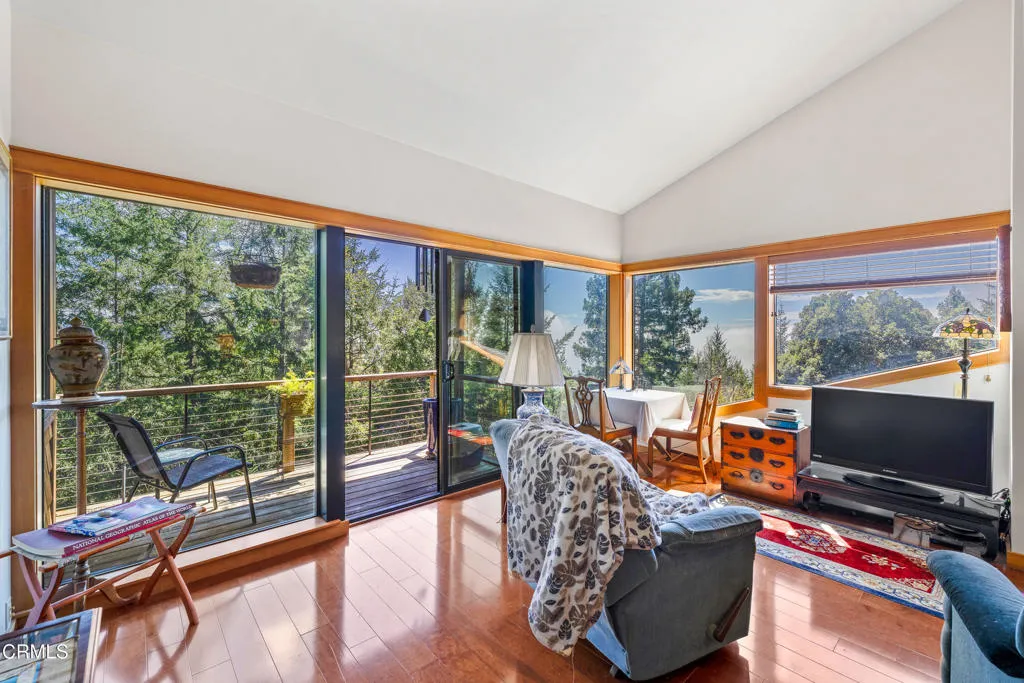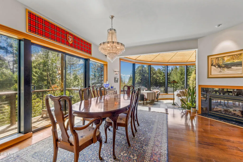 Perched along the coveted Alviso Ridge, where redwood forest meets the Pacific horizon, this exceptional 20-acre coastal retreat offers a rare blend of privacy, scale, and true self-sustaining living. Designed and built in 2009, the 4,220 sq. ft. residence is a sanctuary for those seeking independence without sacrificing refinement. From the moment you arrive, the artisan front door, adorned with etched gold leaf, sets the tone for a home defined by craftsmanship and intention. Inside, the architecture opens into a dramatic Great Room, where a 13-foot chimney anchors the wood-burning fireplace and a sweeping semicircular wall of windows invites the natural landscape in. Originally designed to capture expansive ocean views, the setting offers a unique opportunity to selectively clear or top trees on the property to reintroduce striking blue water vistas. The heart of the home is both inviting and functional--a warm, expansive kitchen outfitted with Viking appliances, granite countertops, oiled birchwood cabinetry, and a walk-in pantry, seamlessly connecting to a sunlit breakfast alcove and south-facing patio. Here, mornings begin in stillness and evenings unfold beneath vivid sunsets and an endless canopy of stars. A library and sitting room with propane fireplace offer additional spaces to unwind. The primary suite is a private haven, complete with ocean views, dual walk-in closets, and a spa-inspired bath featuring a deep soaking tub and walk-in shower. Radiant floor heating throughout ensures year-round comfort. Engineered for autonomy, the property delivers a truly self-
