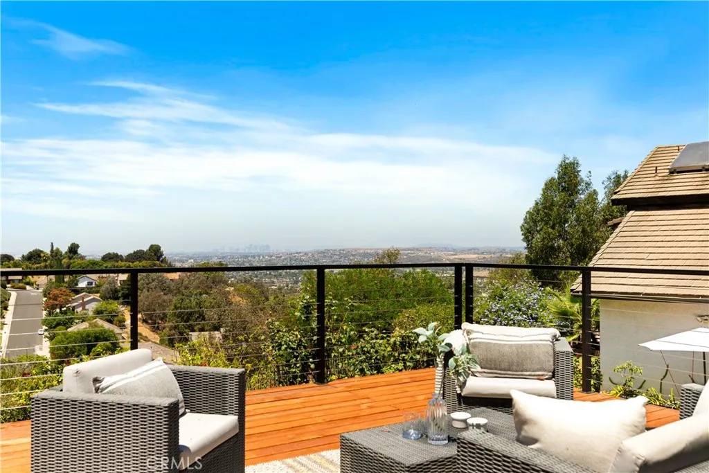 Set high in the hills of Whittiers coveted Spy Glass community, this beautifully remodeled two story home brings together clean design, quality finishes, and a layout that just feels right. With 4 bedrooms, 3 bathrooms, including one bed and full bath downstairs, it offers flexibility for guests, office space, or multi generational living. The main level is completely open, with the kitchen, dining area, living room, and family room all flowing together. Its the kind of layout that makes everyday life feel easy and hosting feel effortless. The kitchen features quartz countertops, custom cabinetry, and stainless appliances. Upstairs, the primary suite gives you a real sense of retreat. Youve got a walk-in closet and a private deck with hillside views that stretch out in the distance. The bathroom includes dual sinks, a dedicated vanity, and updated finishes that feel clean and calming. Tucked at the end of a quiet cul-de-sac, this home offers both privacy and a strong sense of community. Come view this home before its too late!
