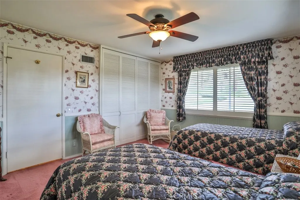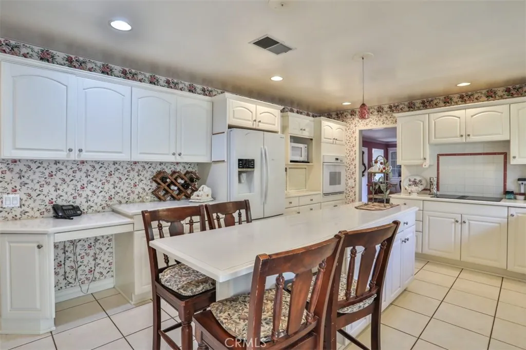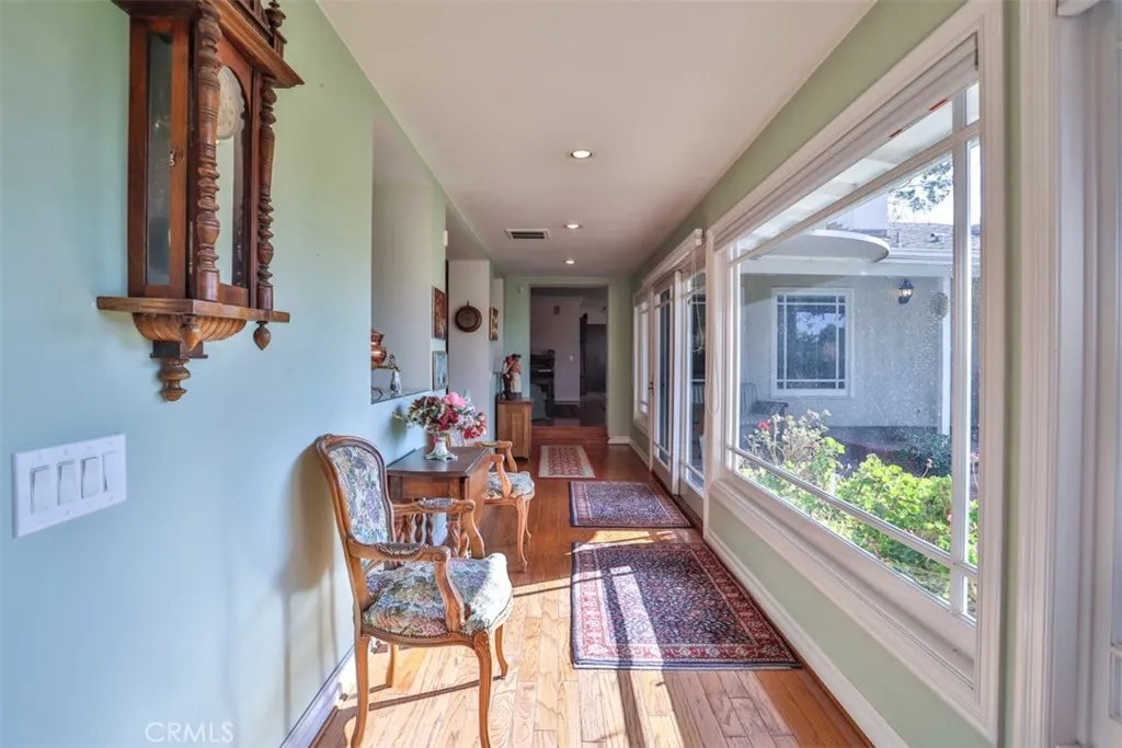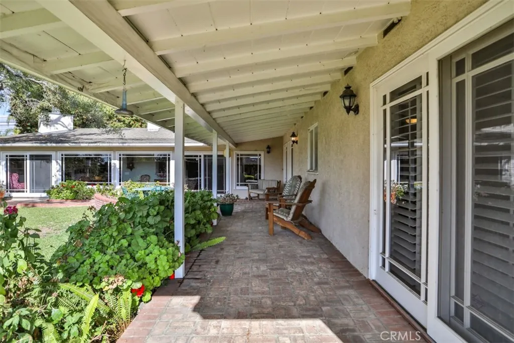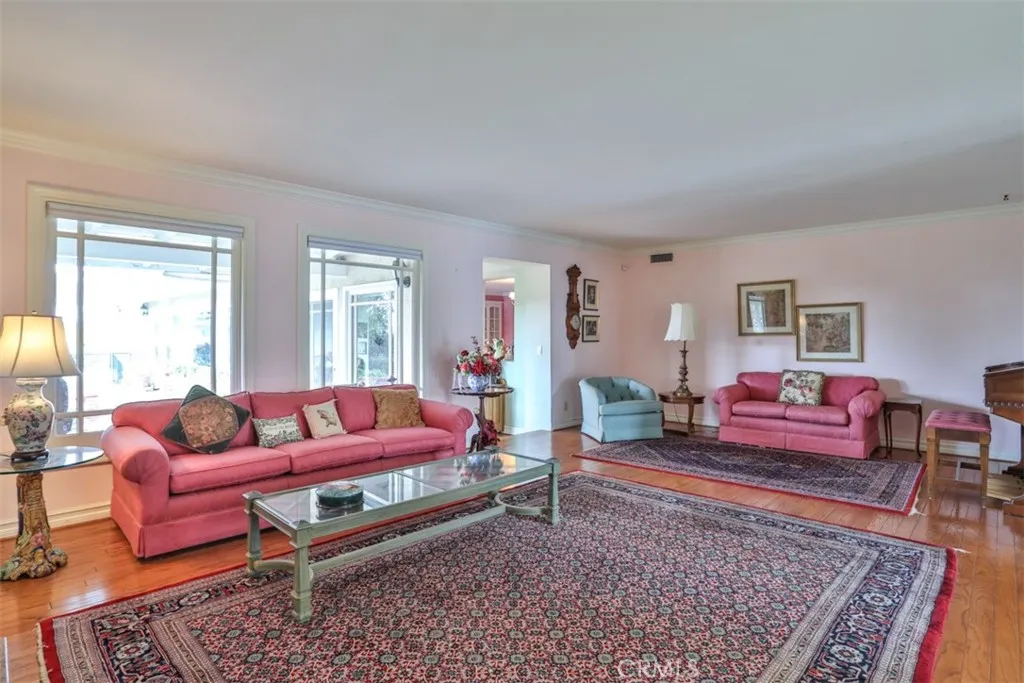 This exceptional custom estate in Friendly Hills is situated on one of Whittier's most coveted streets. The single-level ranch home creates a warm and inviting atmosphere, highlighted by stunning hardwood floors throughout the main living area and three elegant fireplaces with custom built-inslocated in the formal living room, formal dining room, and family room with bar. The kitchen boasts beautiful white cabinetry with ample storage, Corian countertops, an island with seating, and a dedicated desk area. You'll love the primary suite, a luxurious retreat featuring extensive closet space, a private sitting area for applying your makeup and curling your hair, and direct access to the inviting backyard, perfect for enjoying your morning coffee while listening to the birds sing. The property includes a two-car front-facing garage, an extra-long side driveway leading to a four-car garage, and a dedicated craft/hobby room with its own entrance. The expansive yard is divided into two sections: the upper yard, located just off the main living area, features a covered patio and brick walkways, while the lower yard holds potential for development, such as a pickleball court, swimming pool, or accessory dwelling unit for the mother-in-law. This ranch-style home presents limitless possibilities and is one of the few homes with such extensive amenities in the area. Come and see for yourself, discover the endless possibilities this home offers, and be captivated by its unique charm.