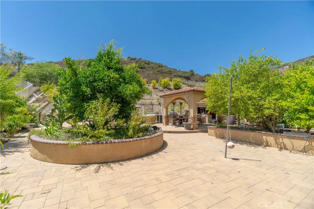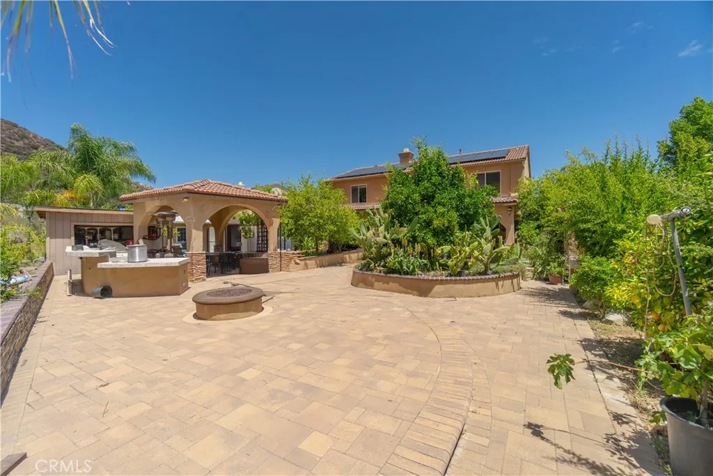 Tucked into Wildomars rolling hills, this private estate spans over half an acre and greets you with a tandem four-car garage, gated RV parking, and a detached bonus structure ready for a gym, workshop, or studio. Step inside to more than 4,100 sq ft of thoughtfully crafted living space where a main-level bedroom and bath accommodate guests, while formal living and dining rooms flow effortlessly into a gourmet kitchen boasting granite counters, an oversized island, stainless appliances, and a walk-in pantry that opens to a welcoming family room with fireplace and built-in bar. Upstairs, a versatile loft connects five additional bedrooms, crowned by a primary suite featuring a walk-in closet, dual vanities, dedicated makeup station, soaking tub, and separate shower. Outdoors, an entertainers oasis awaits with a built-in BBQ island, covered gazebo with bar seating, firepit lounge, stamped-concrete patio, and mature fruit trees that frame memorable gatherings and peaceful evenings alike. Rarely does a home blend versatility, quality, and lifestyle so seamlesslyschedule your private tour today.